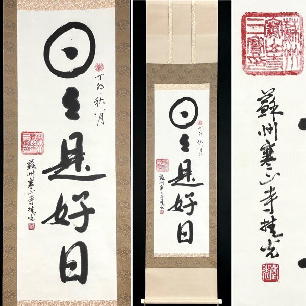 P93M09[真作]寒山寺 楚光「日々是好日」掛軸 紙本 書 肉筆/当代高僧 江蘇興化の人 蘇州寒山寺主持 中国 書画