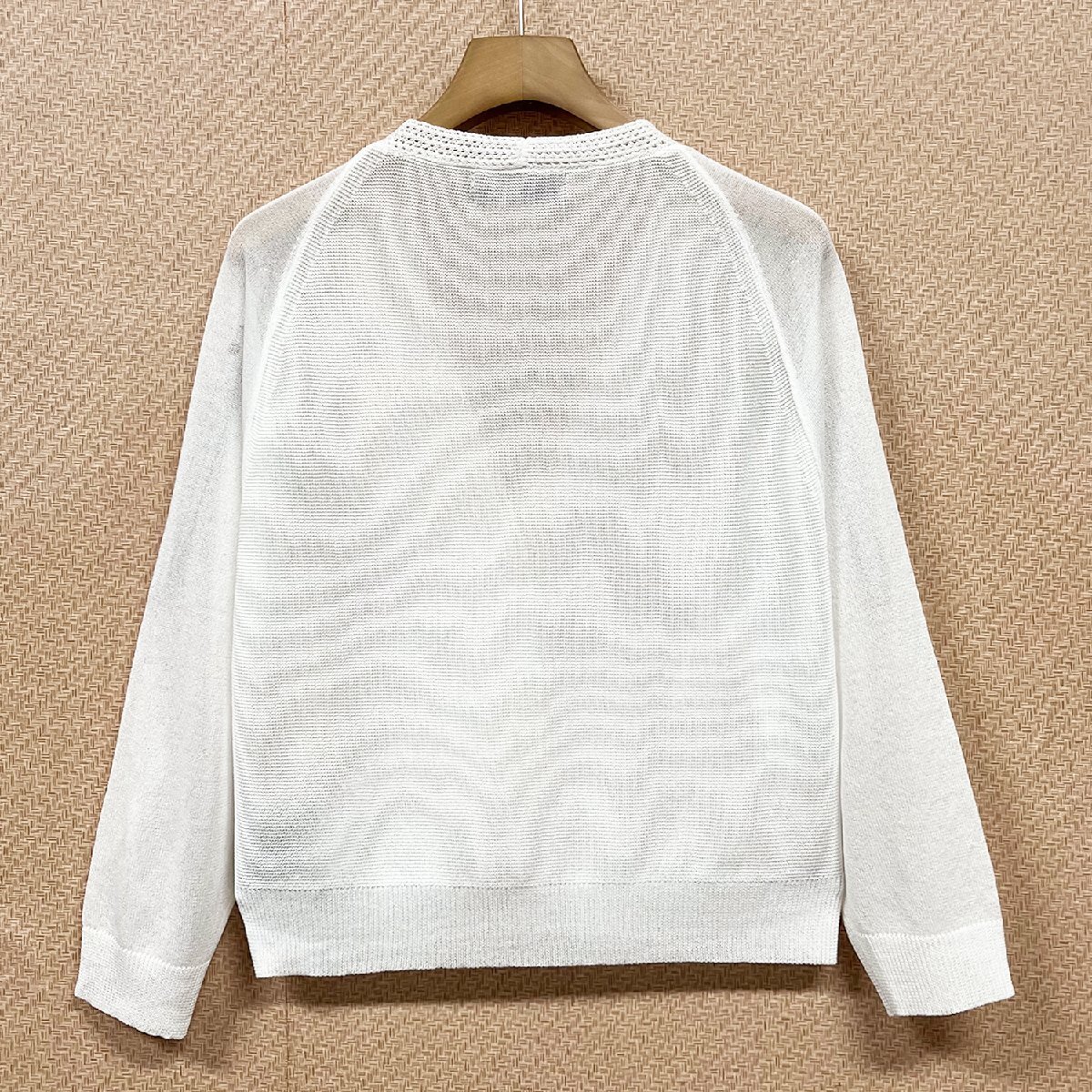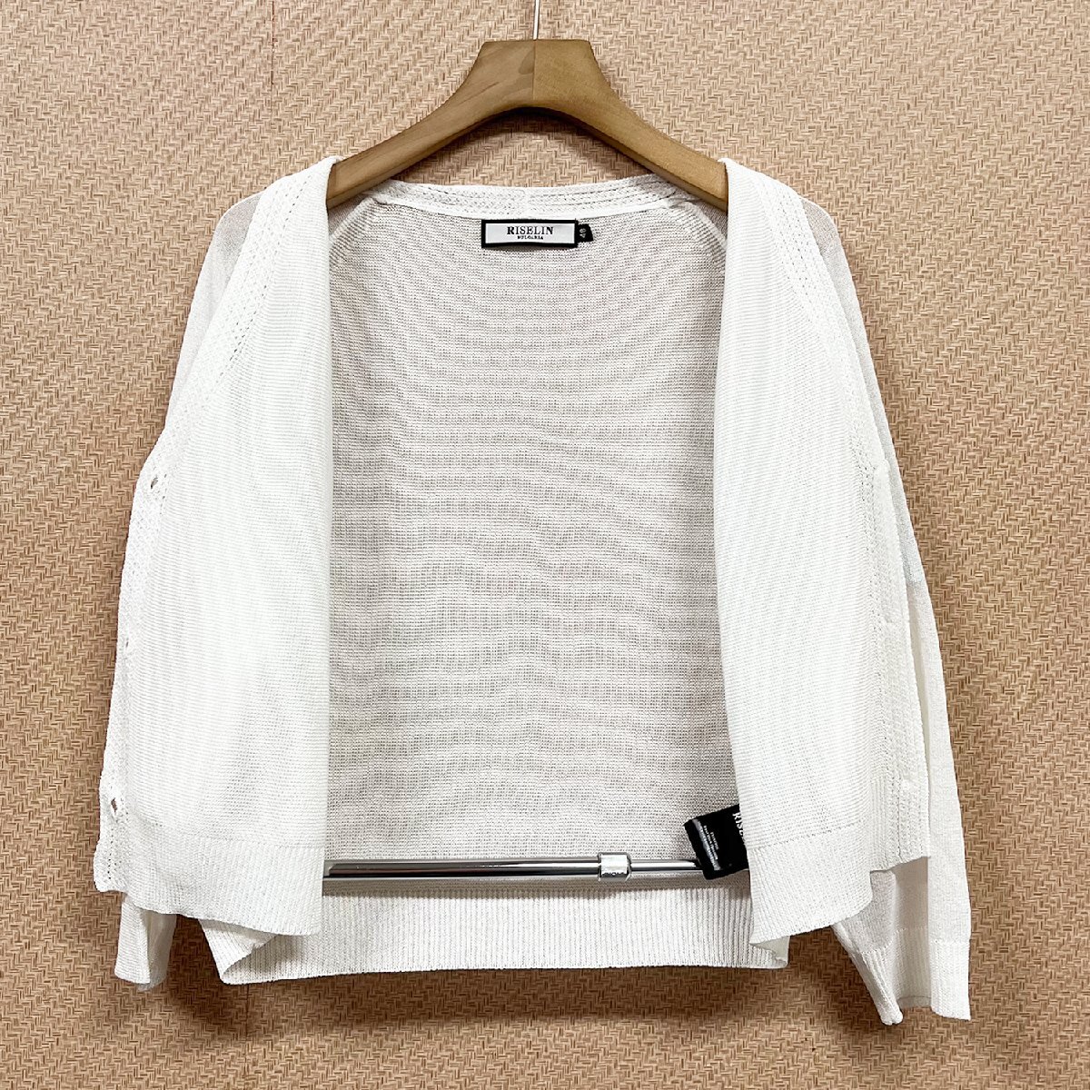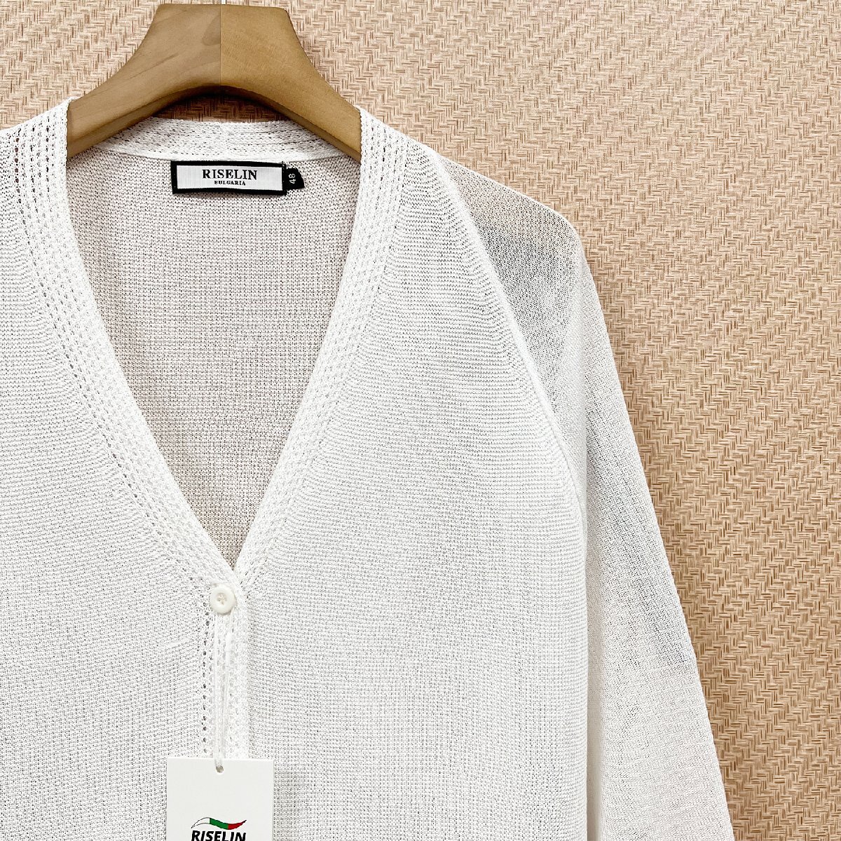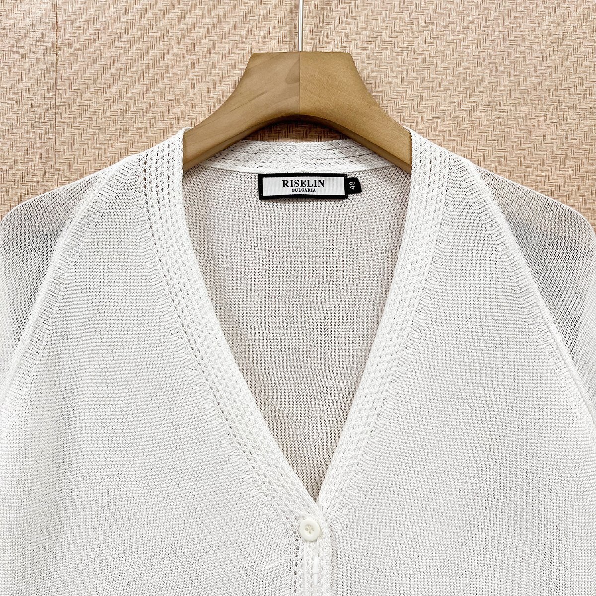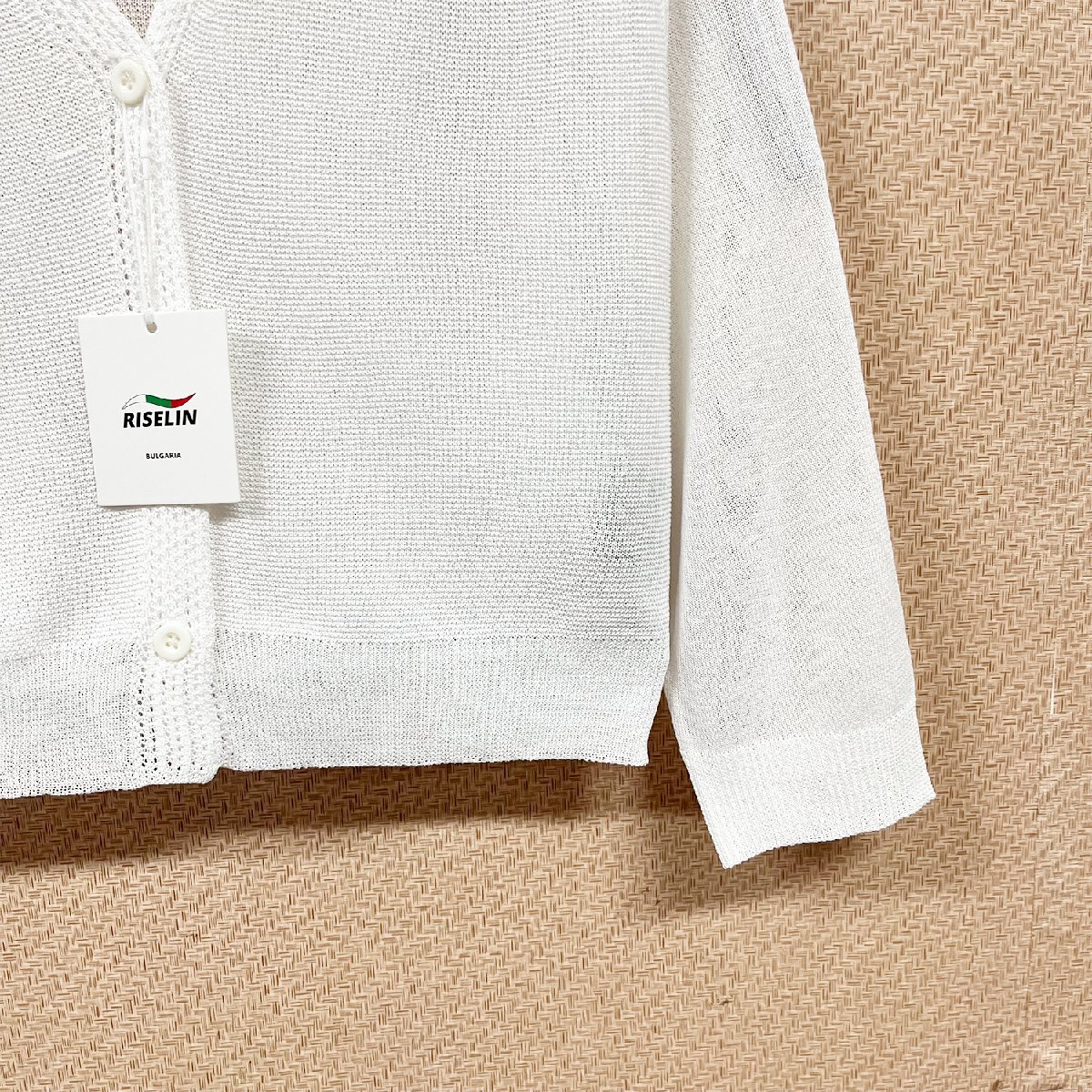 上級ヨーロッパ製※定価5万◆ブルガリア発※RISELIN カーディガン ウール混 通気 透け感 メッシュ編み 無地 Vネック 夏用 レディース L/48サイズ