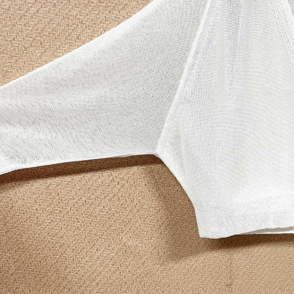 上質なウール混紡素材を使用しています。薄手で、肌に爽やかに触れます。やや透けるデザインで、通気性がよく、涼しい着心地を提供します。
