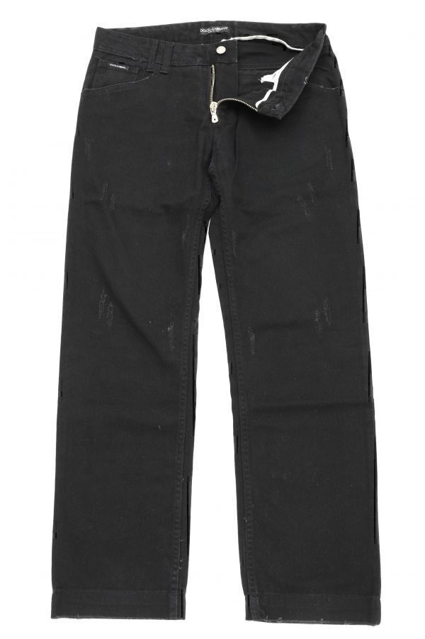 希少サイズ☆美品★DOLCE&GABBANA ドルチェ&ガッバーナ★ドルガバ D&Gクラッシュデニム Size50 XL【正規品】ブラック黒【本物保証】中古品