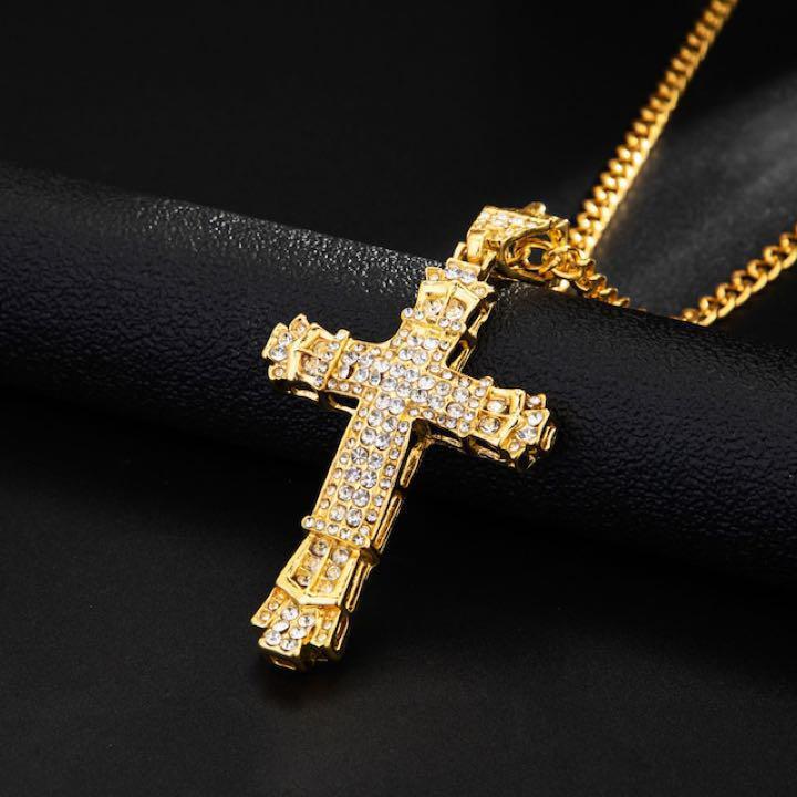ジルコニアクロスネックレス ゴールド 十字架 無骨