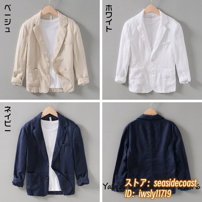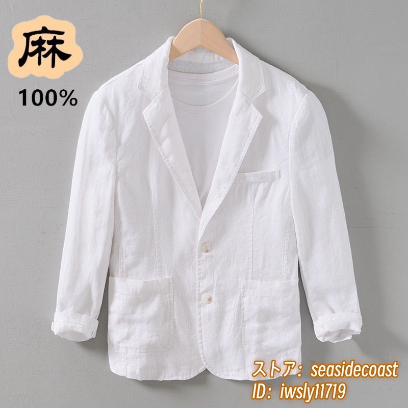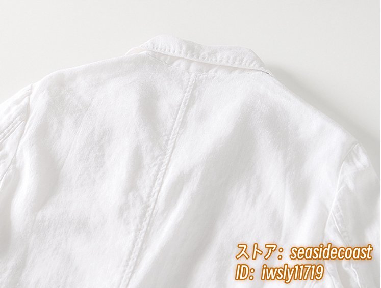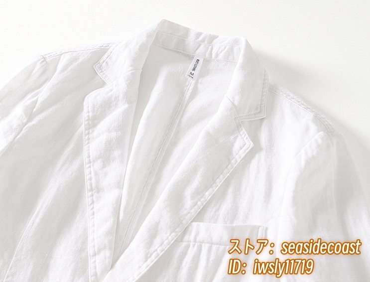 最高級 テーラードジャケット メンズ 春夏 コート リネンジャケット ブレザー 背広 薄手 麻スーツ デザイナーズ 無地 清涼感 ホワイト 3XL