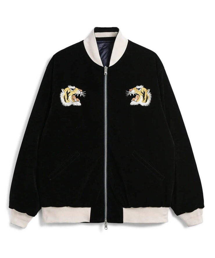 ・表地には、ベロア生地に前後スカジャン風の刺繍を入れています。