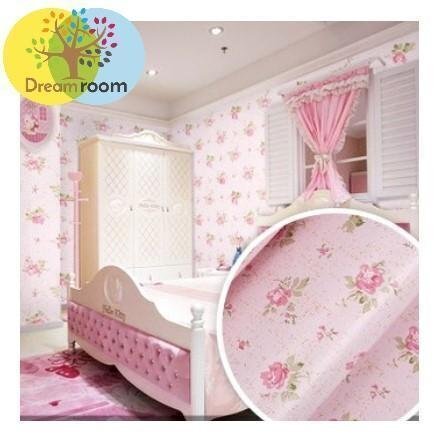 送料込 3D エレガント B193 小花ローズpk×pk 10m ストーン 壁紙 北欧 インテリア はがせるシール DIY ウォールペーパー 糊付き