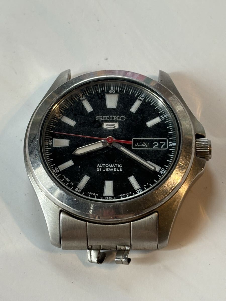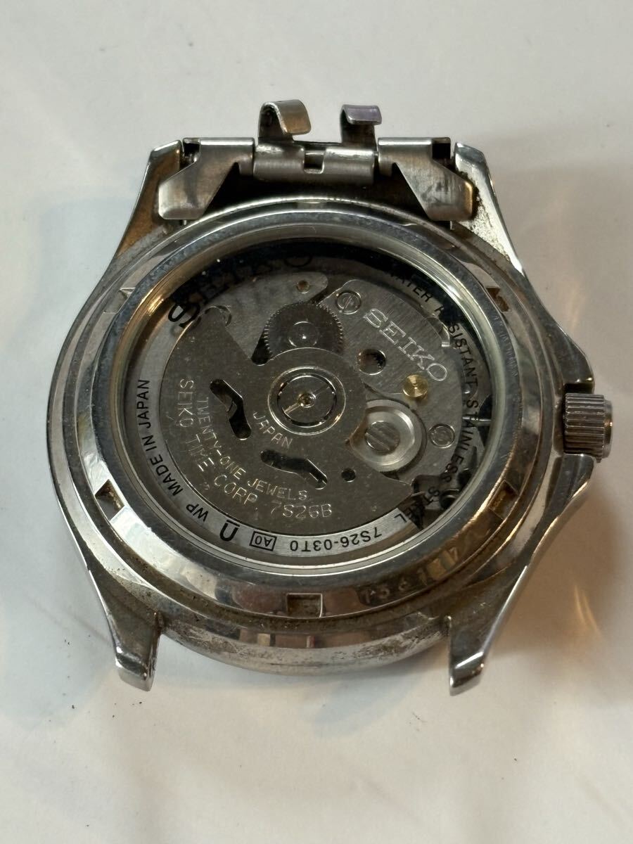 1円〜 SEIKO セイコー 自動巻き 腕時計 アナログ シルバーカラー 裏蓋シースルー ブラック文字盤 本体のみ