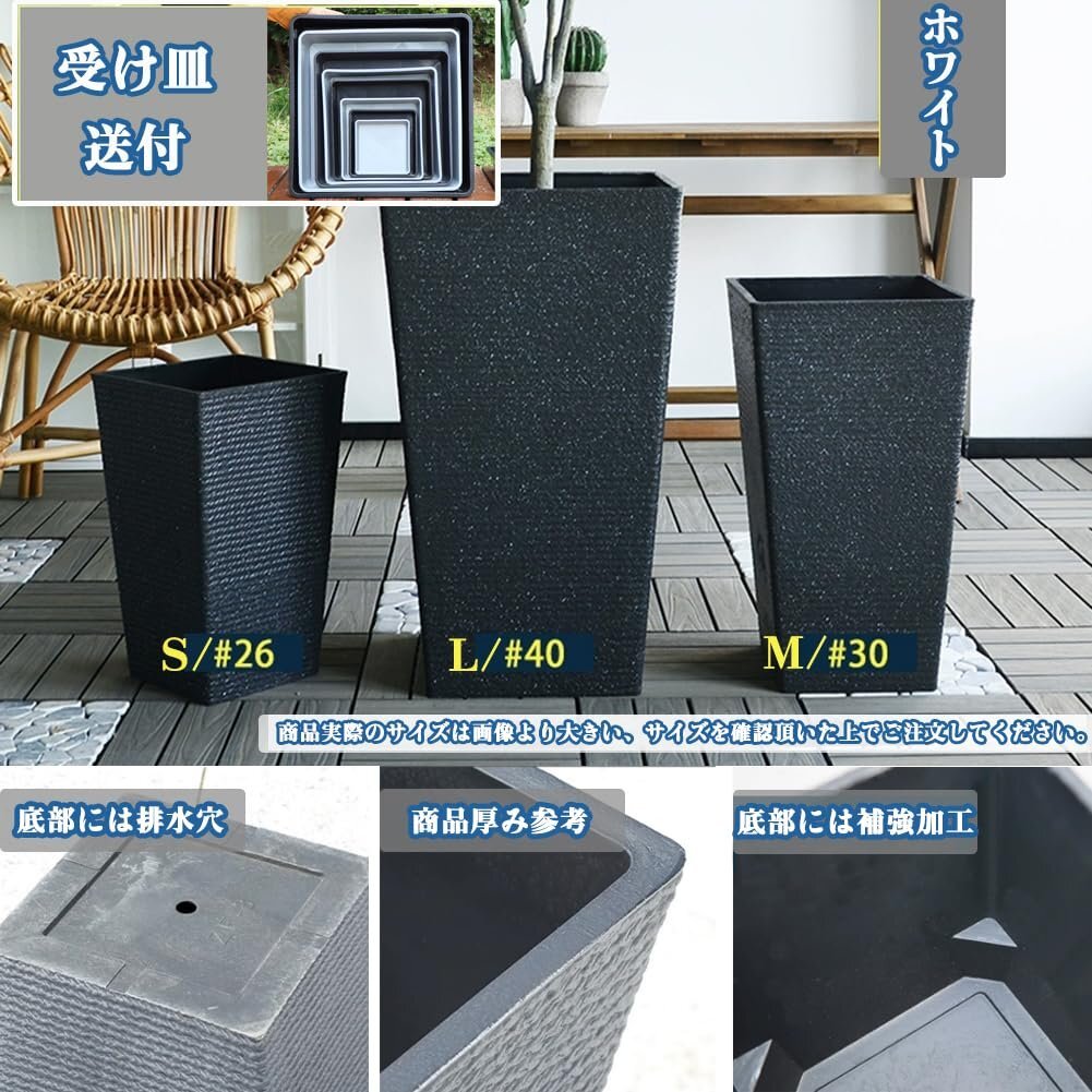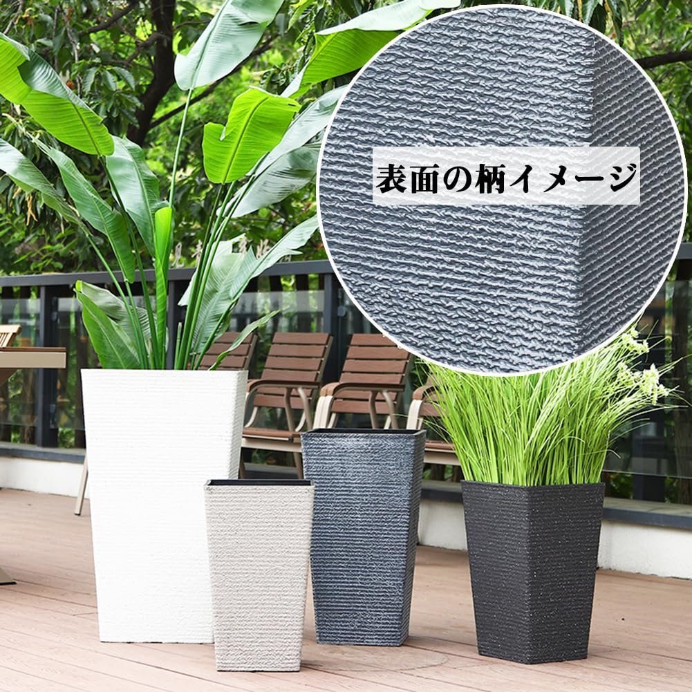 軽量で持ち運びが簡単:プラスチック素材を使用しているため、花盆は軽量であり、移動や配置の変更が容易です。重たい石製の花盆と比較して、便利な使い勝手があります。