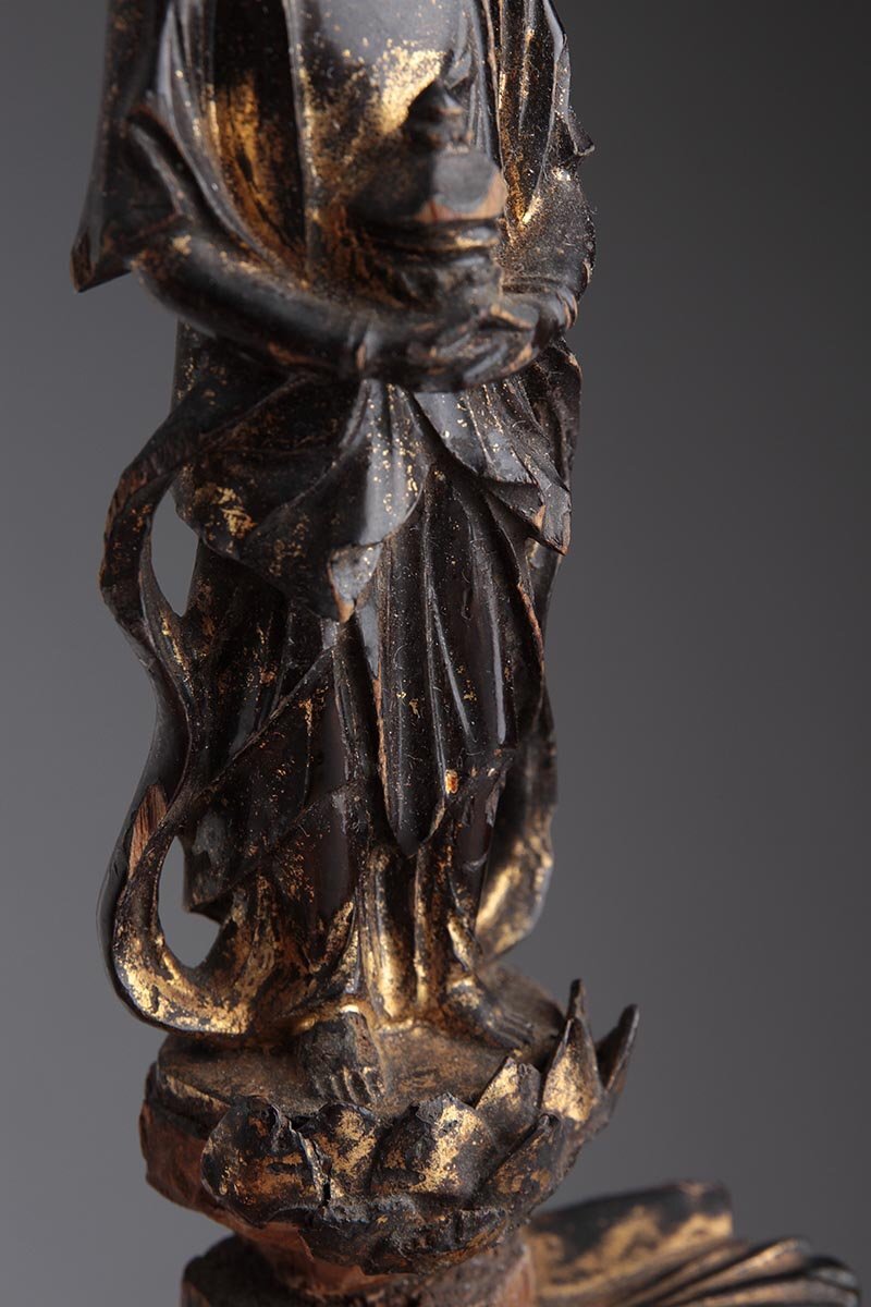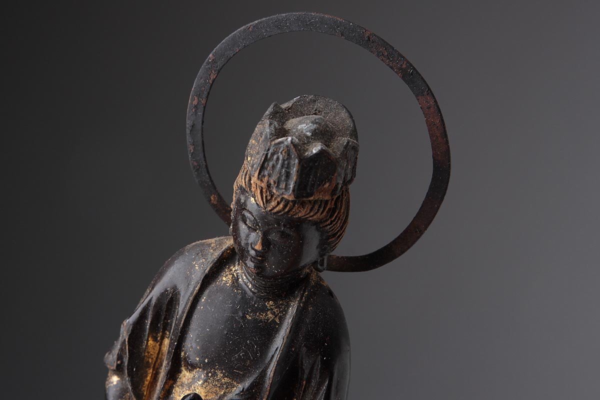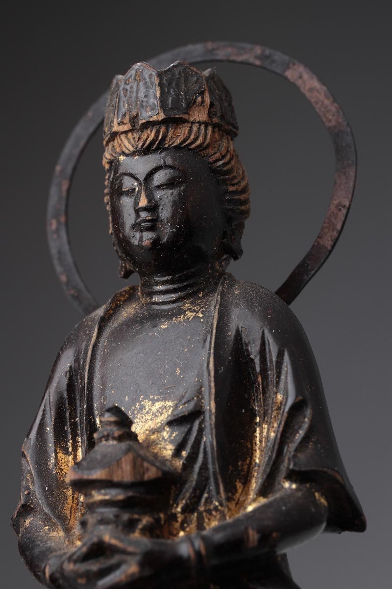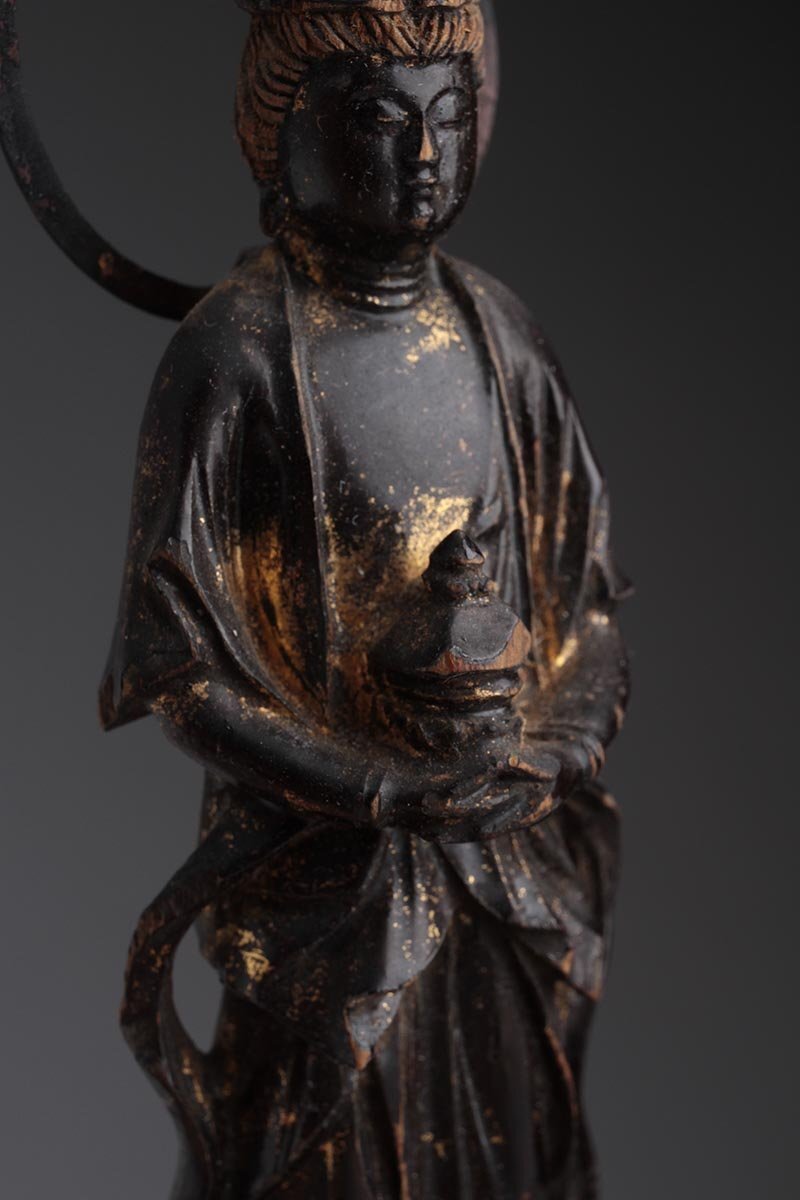 ◆ 時代 漆箔 木彫「弥勒菩薩像」高18.5cm・木造弥勒菩薩立像・漆金木雕觀音菩薩像 仏像 佛像 仏教古美術 ◆