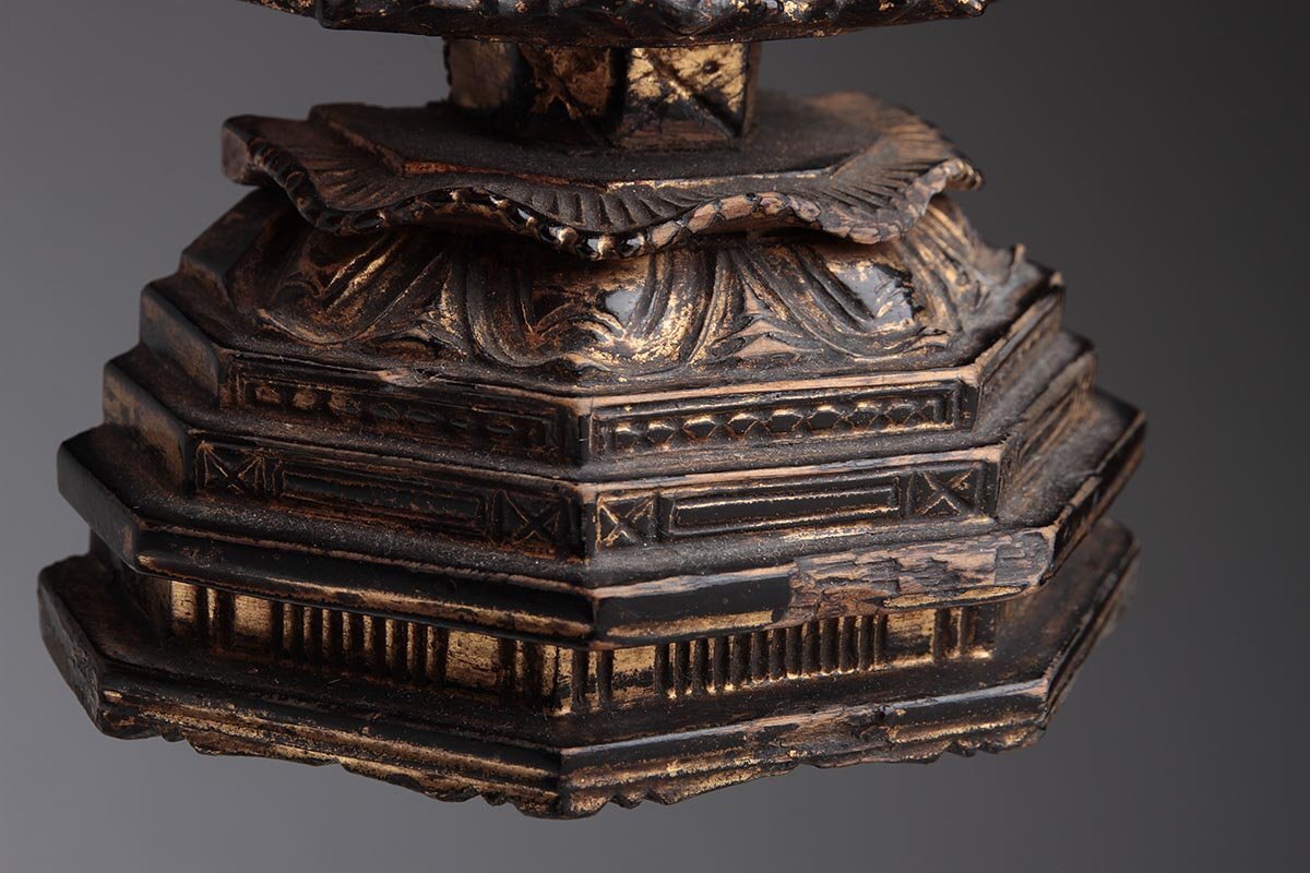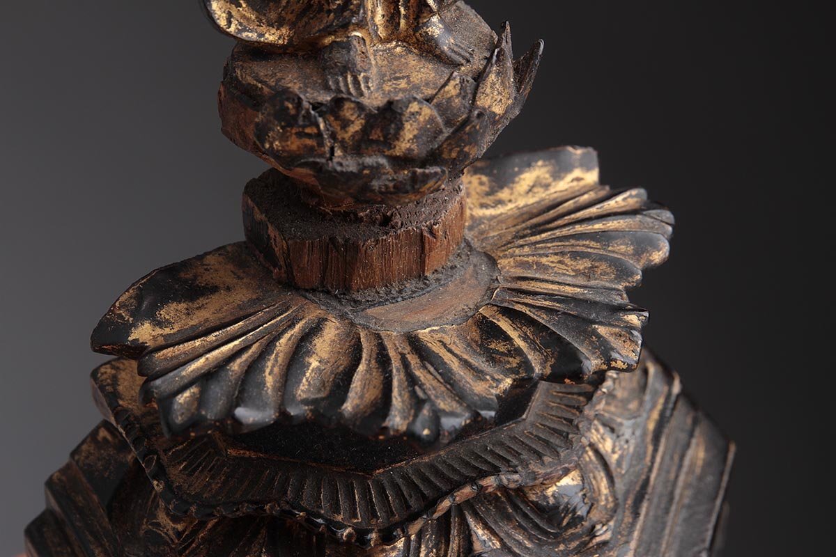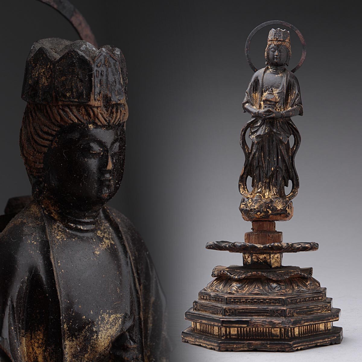 ◆ 時代 漆箔 木彫「弥勒菩薩像」高18.5cm・木造弥勒菩薩立像・漆金木雕觀音菩薩像 仏像 佛像 仏教古美術 ◆