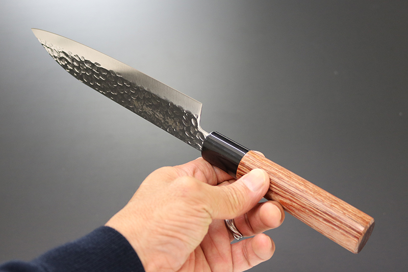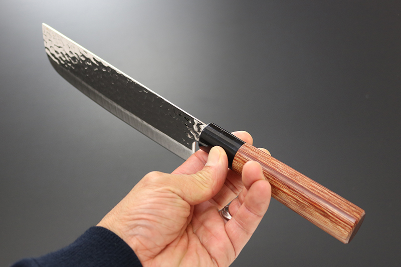 槌目加工による凹凸は、風合いが美しいだけでなく、食材の切り離れを助け、切れ味を助長します。