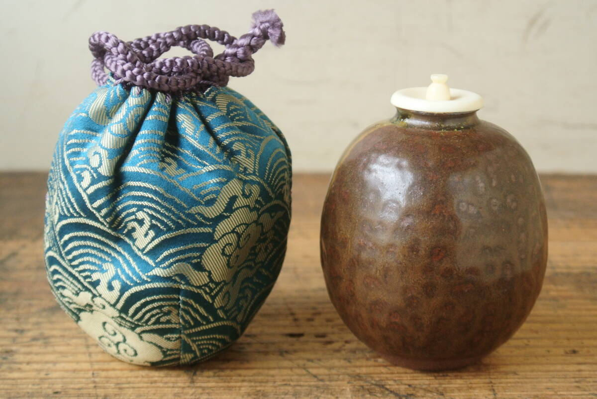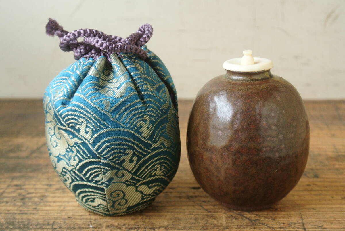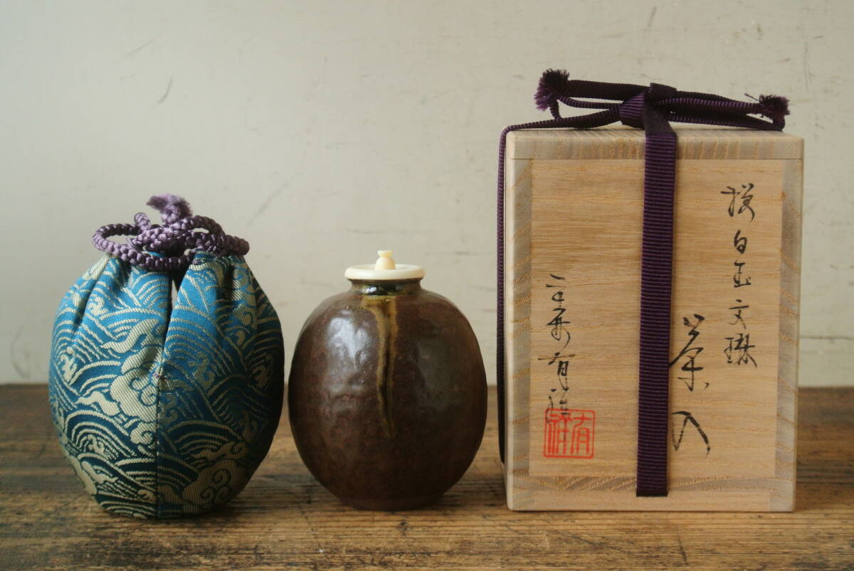 笹田有祥 摸白玉文琳茶入 仕覆(珠光緞子) 栞 共箱 本物保証 検】茶道具