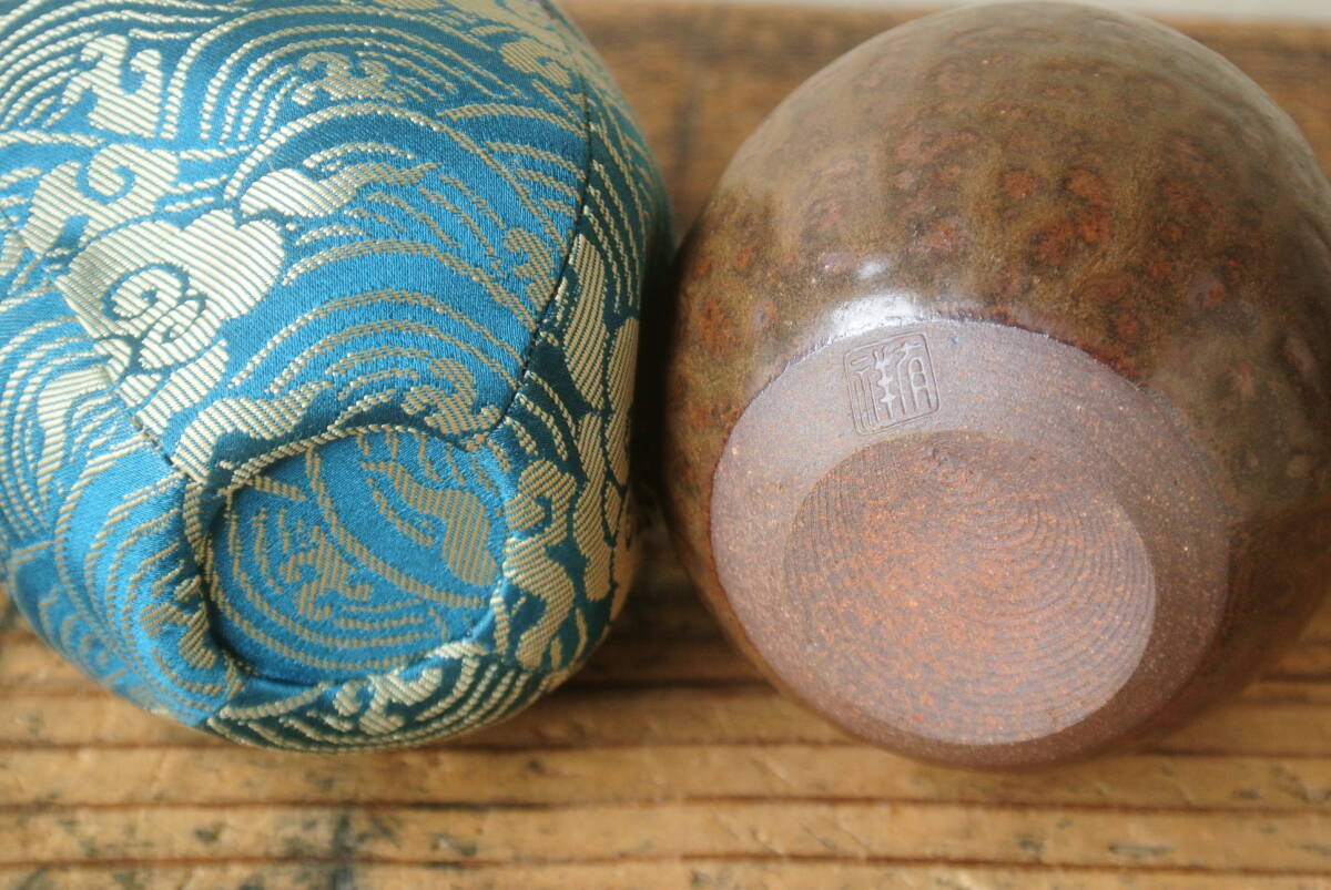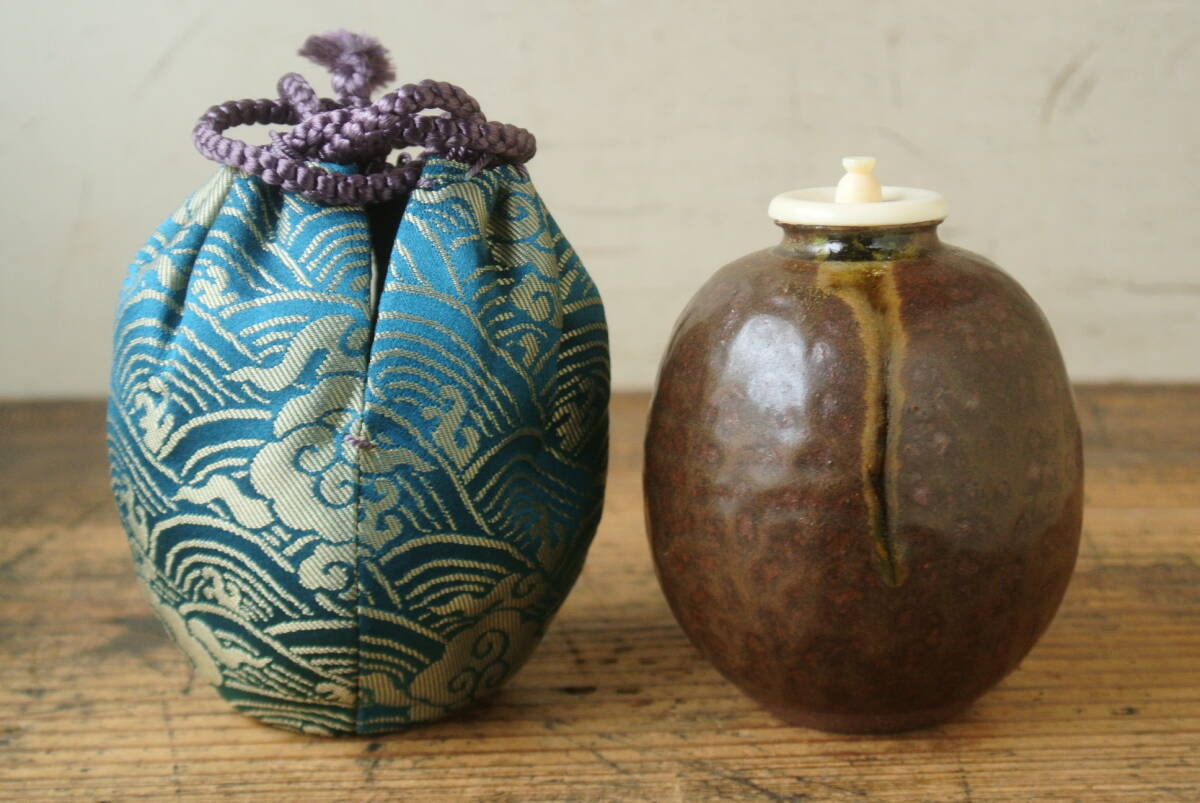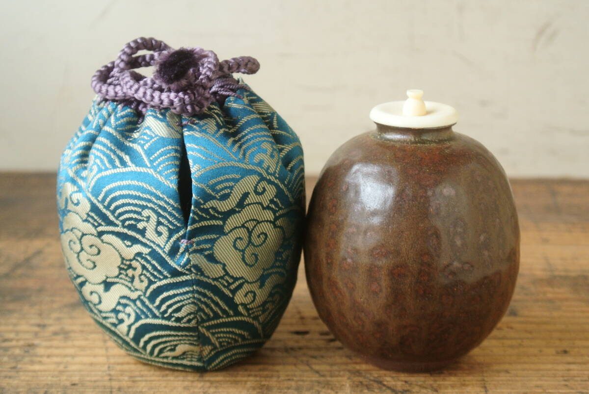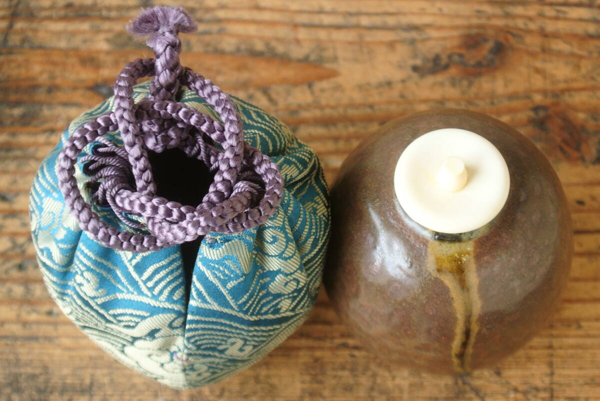 笹田有祥 摸白玉文琳茶入 仕覆(珠光緞子) 栞 共箱 本物保証 検】茶道具