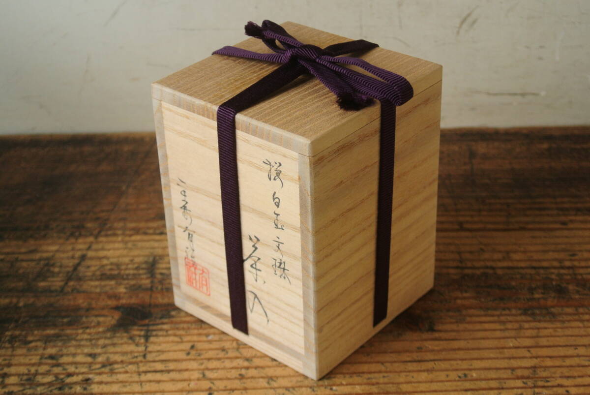 笹田有祥 摸白玉文琳茶入 仕覆(珠光緞子) 栞 共箱 本物保証