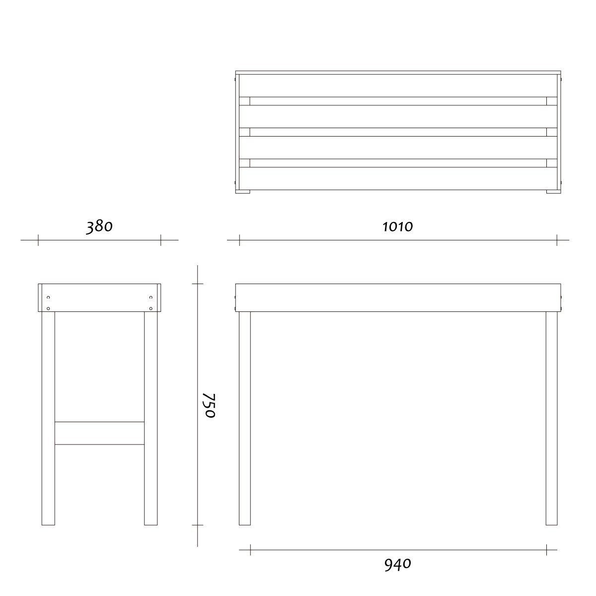 商品寸法(単位mm):幅1010×奥行380×高さ750、内寸幅約940