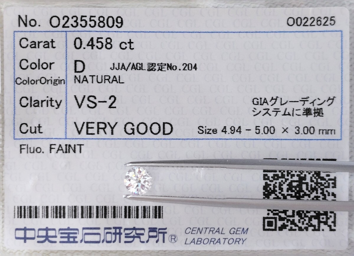 【10/4★安値〜】天然ダイヤモンド ルース 0.458ct D VS2 鑑別 CGL│A10643ag 【0.4ct】 ダイヤ diamond