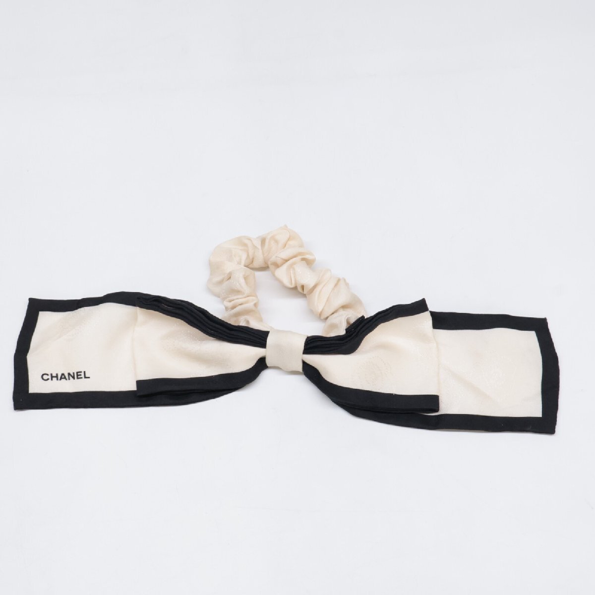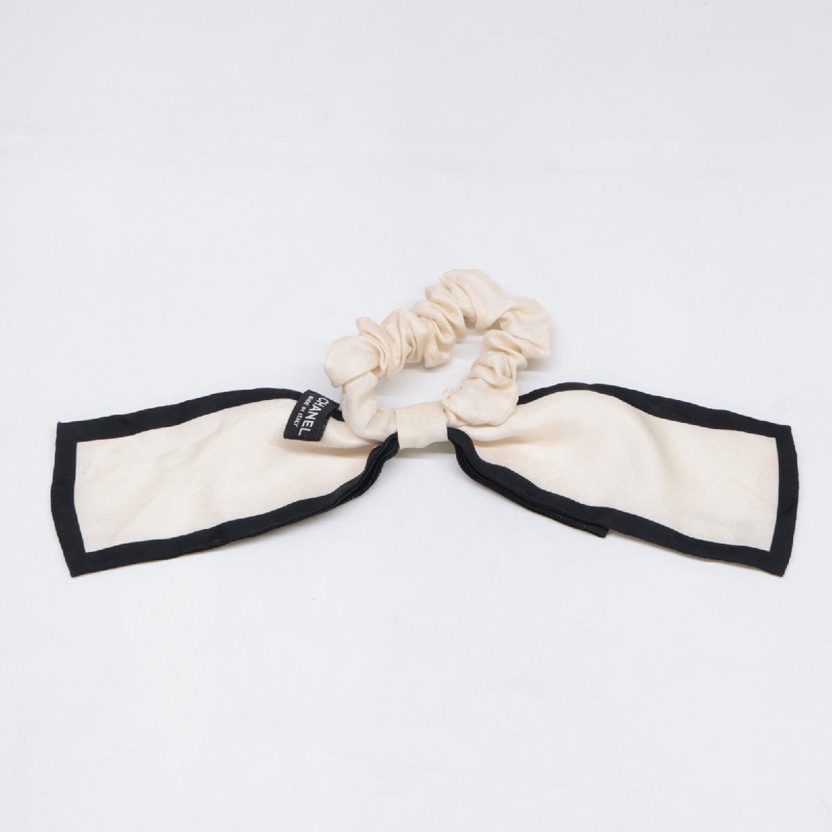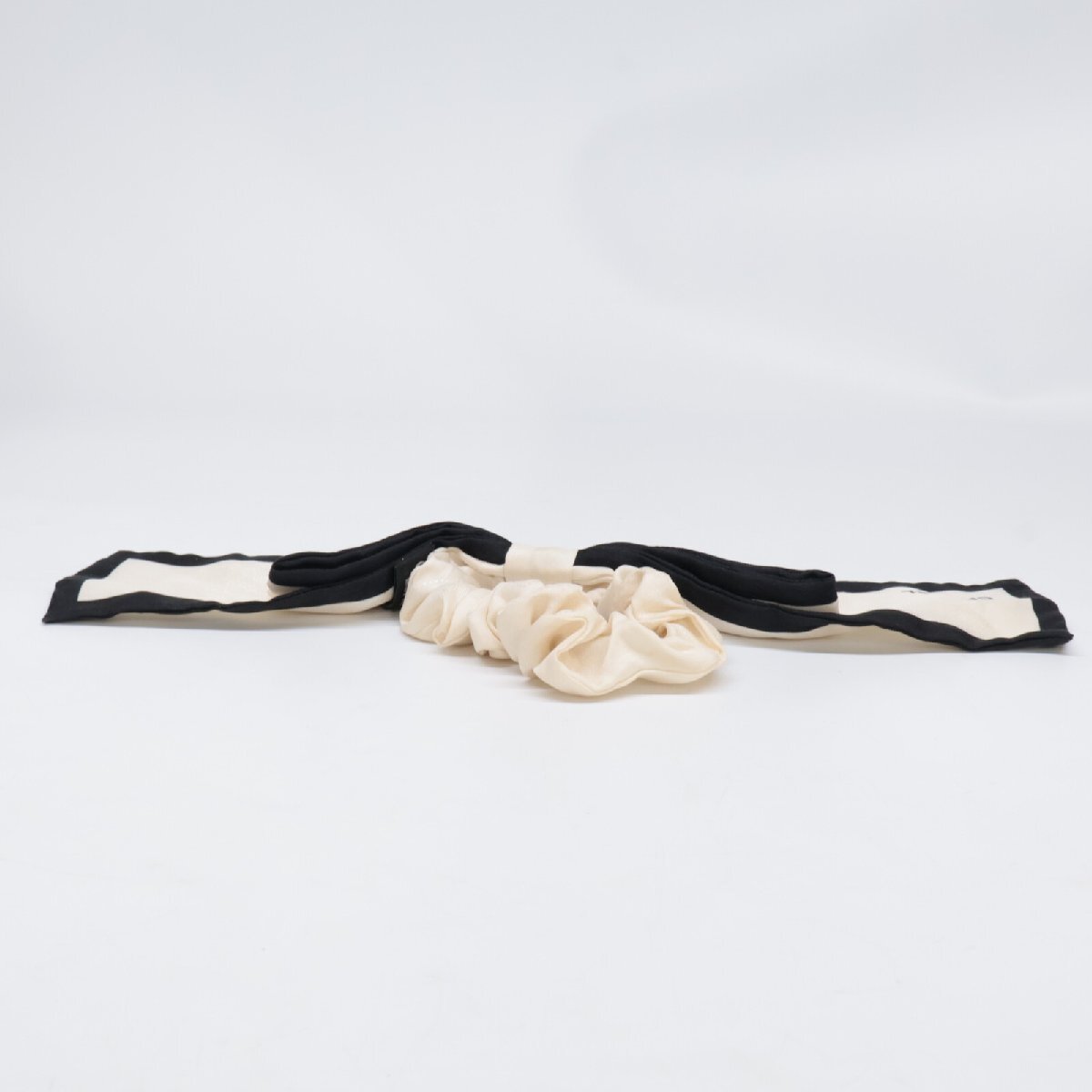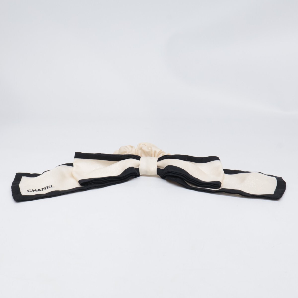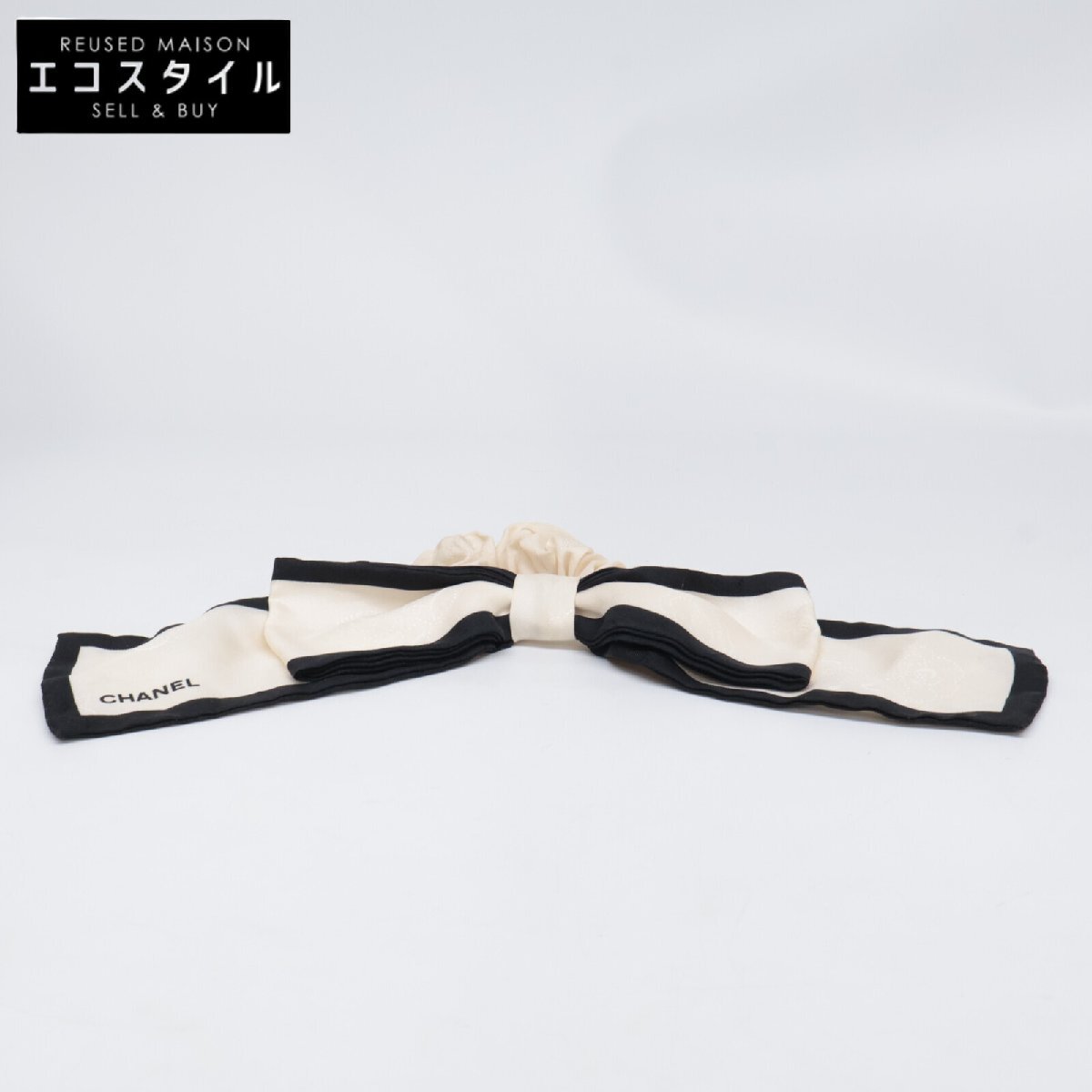 CHANEL シャネル AA7530 カメリア シルク リボン シュシュ ヘアアクセサリー ホワイト/ブラック レディース