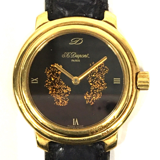 エステー デュポン 193 クォーツ メンズ 腕時計 ラウンドフェイス 黒文字盤 純正ベルト 現状品 S.T.Dupont |