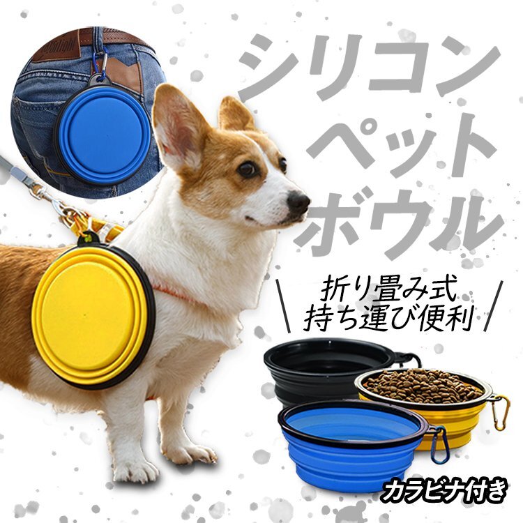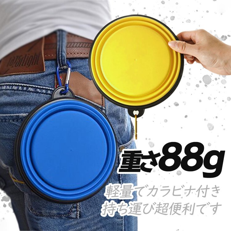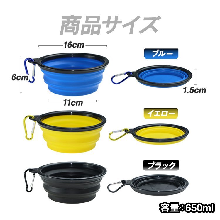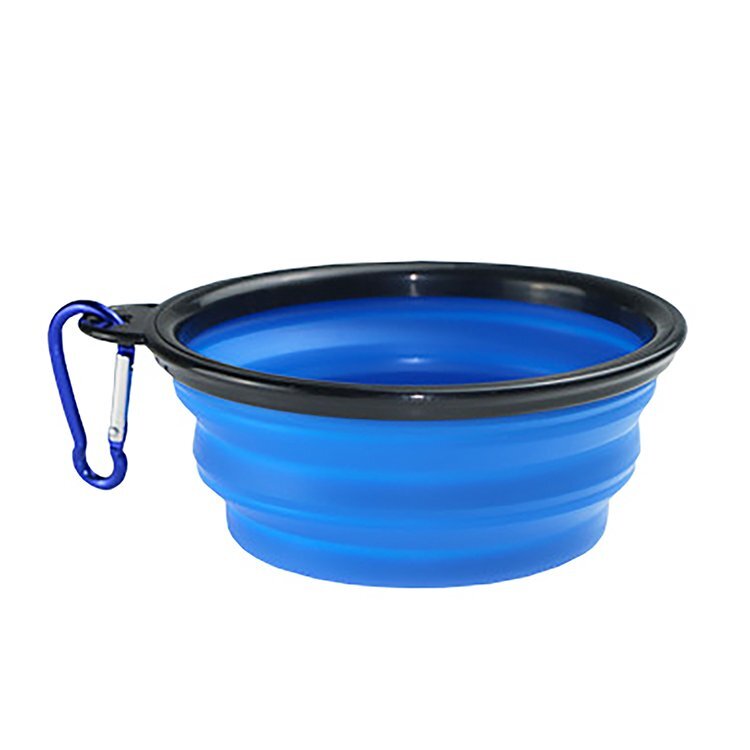 ◆折りたたみ式 シリコン ペットボウル 無臭 カラビナ付 軽量 犬猫用 コンパクト ペット食器 餌入れ ペット給水器 20oz 容量650ML 持ち運び便利 お出かけ 散歩【ブルー】PETBW23OZ