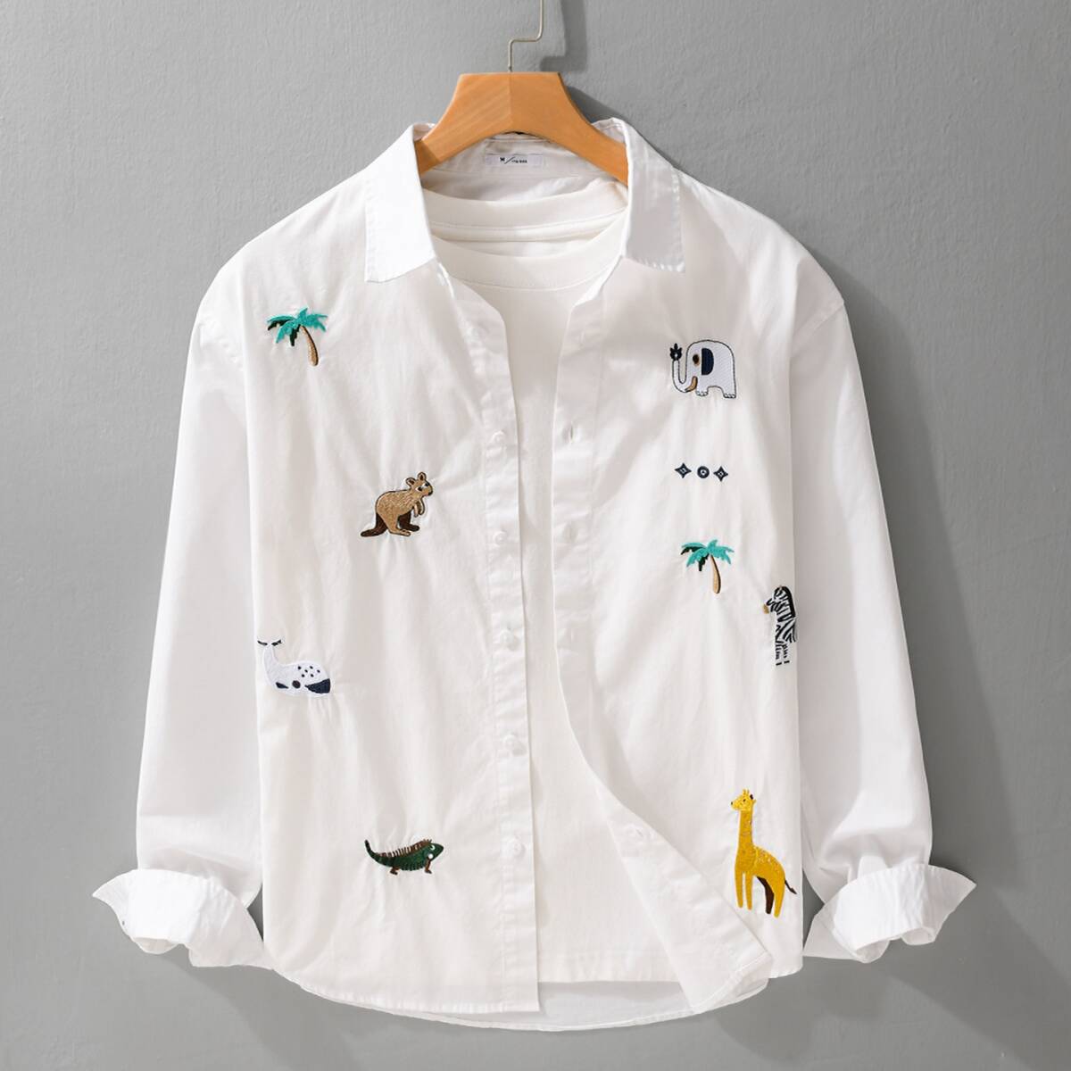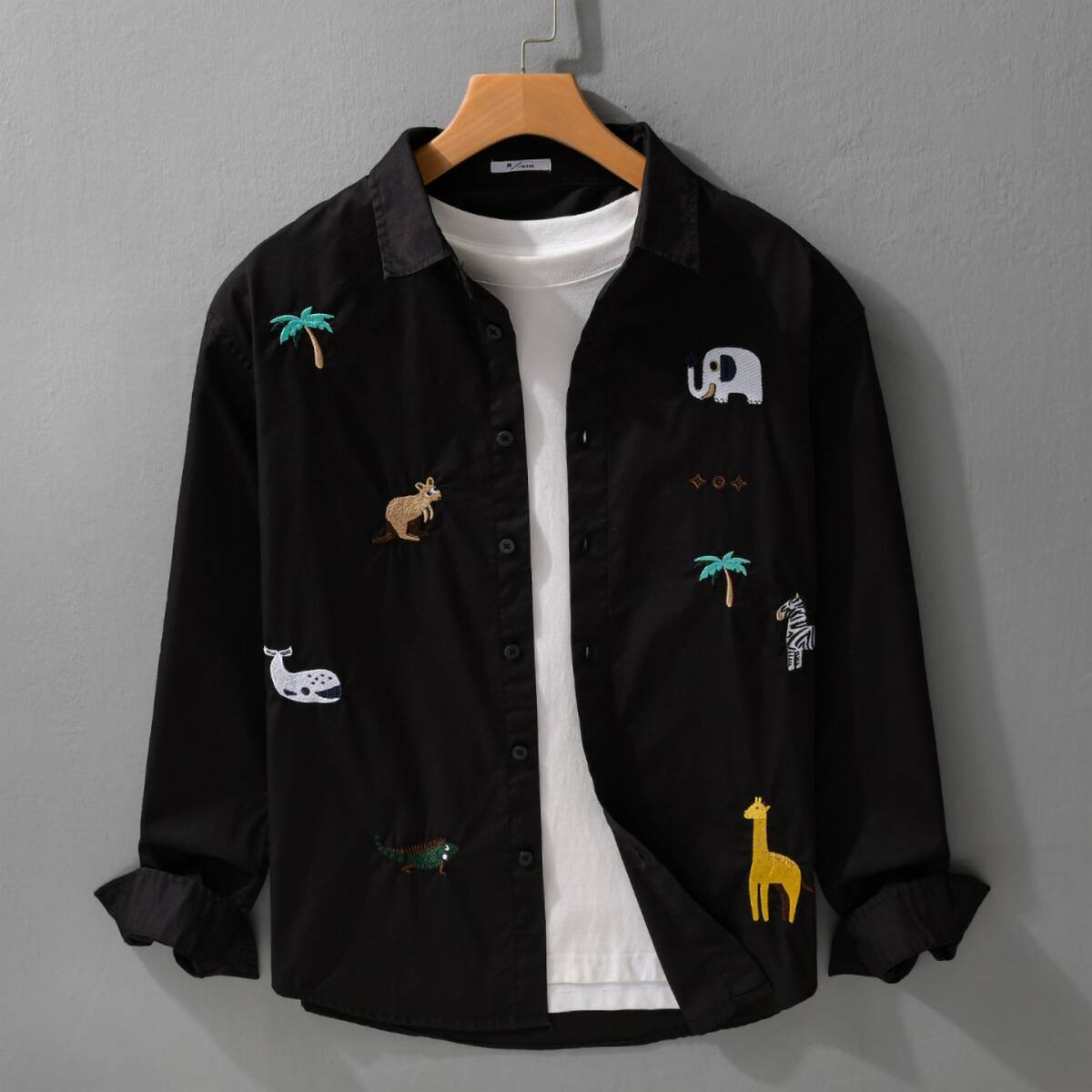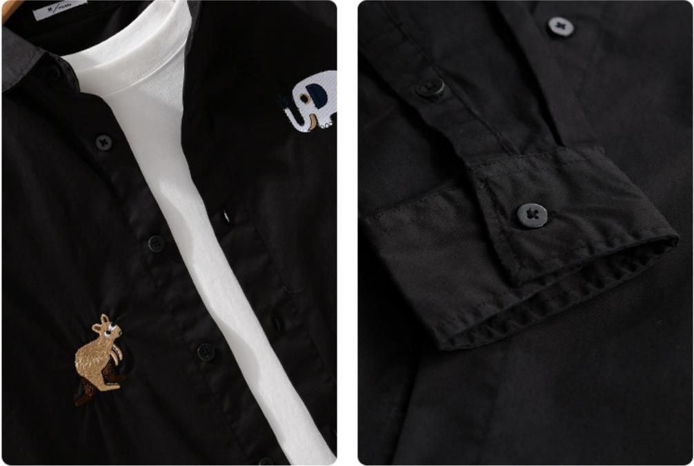 長袖シャツ シャツ 刺繍 シャツジャケット 新品★メンズ トップス 春服秋服 カジュアルシャツ コットン【Y8007】黒 3XL