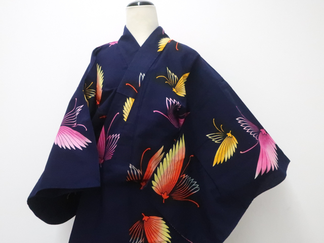 リサイクル商品のため、両背に薄汚れがございますがご着用いただけると存じます。 地色は紺です。肩当て、居敷当て付きです。 1枚目の画像が近いお色かと思われます。 素材は綿です。 |