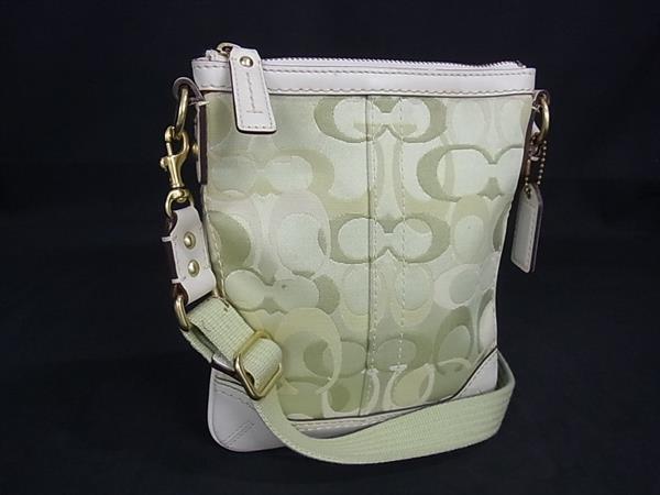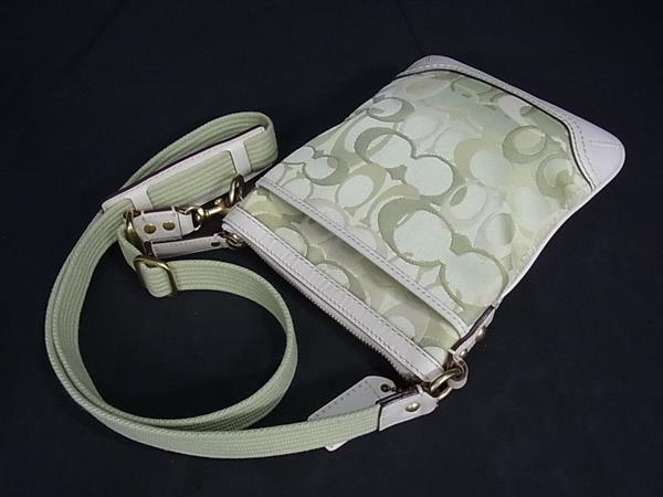 1円 ■美品■ COACH コーチ 10362 シグネチャー キャンバス×レザー ショルダーバッグ ポシェット クロスボディ グリーン系 FS5407