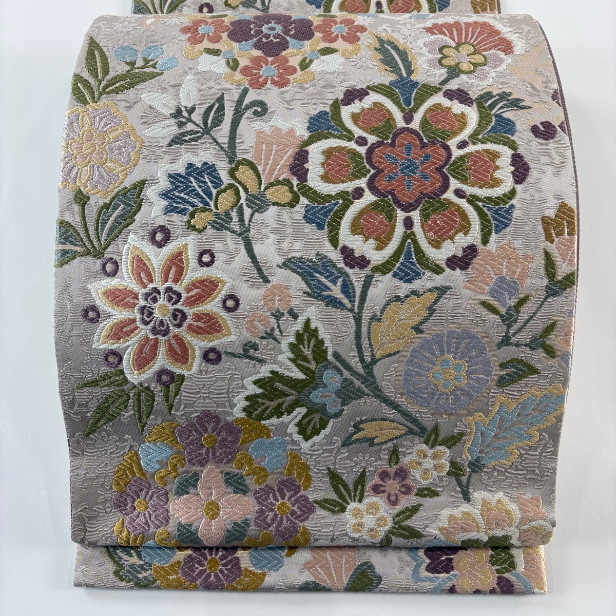 | 袋帯 美品 名品 草花 華文 箔 唐織 薄小豆 六通 正絹 【中古】 |