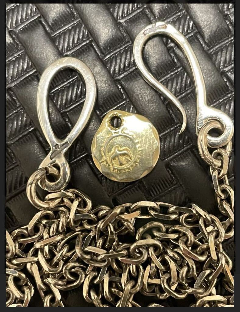 30年以上前にコレクターから譲り受けた商品です。フックの両方にイーグルスタンプの刻印がある、非常に珍しいフックと細角チェーンのセットになります。丸メタル小も、今回はオマケでお付けいたします。