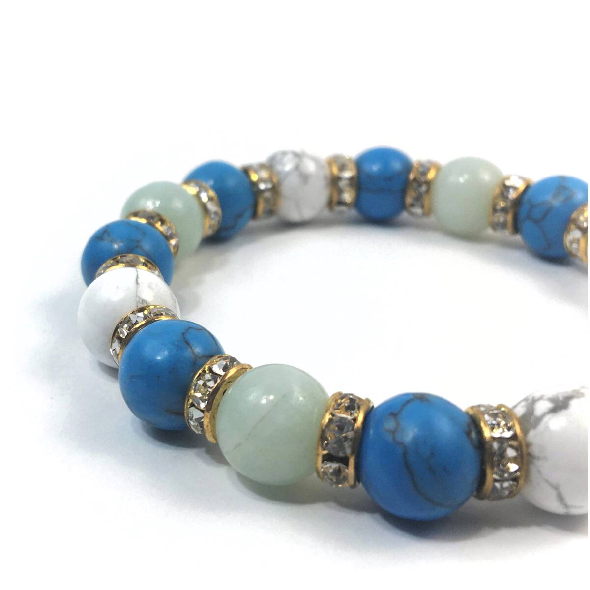 アマゾナイト×ハウライト×ターコイズ パワーストーン ブレスレット (ロンデル: ゴールド) 10mm メンズ・レディース