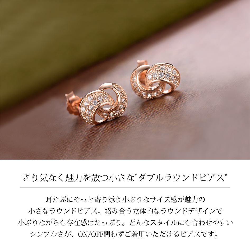 新品/ピアス/K18GP/ラウンド/丸/円/小ぶり/パヴェ/ダイヤ/18金/ピンクゴールド/レディース/両耳/シンプル/小さめ/上品/女性/CZ/PG