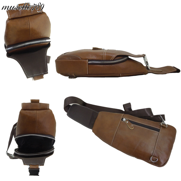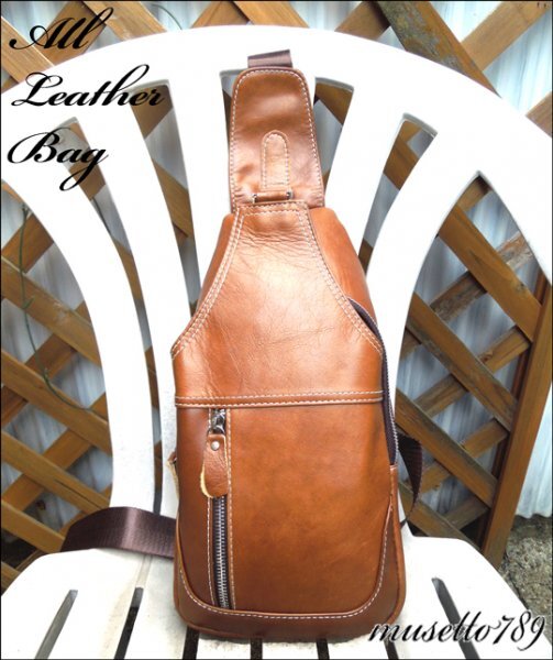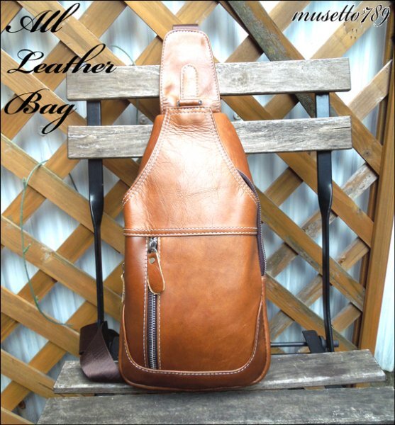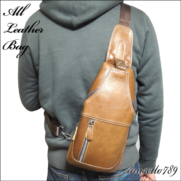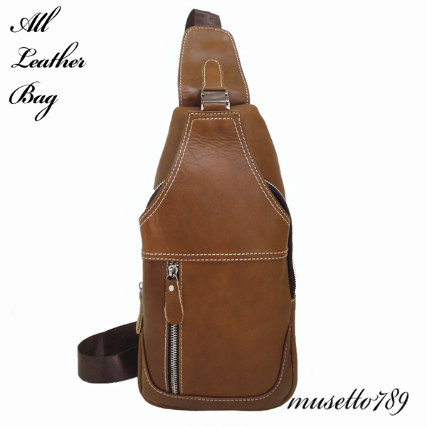 本牛革!◆フルレザーボディバッグ ブラウン◆限定! イタリア革 ヌメ革 秋新作 普段使い/サイクリングにも最適本革 茶 1円~ なめし 1065z
