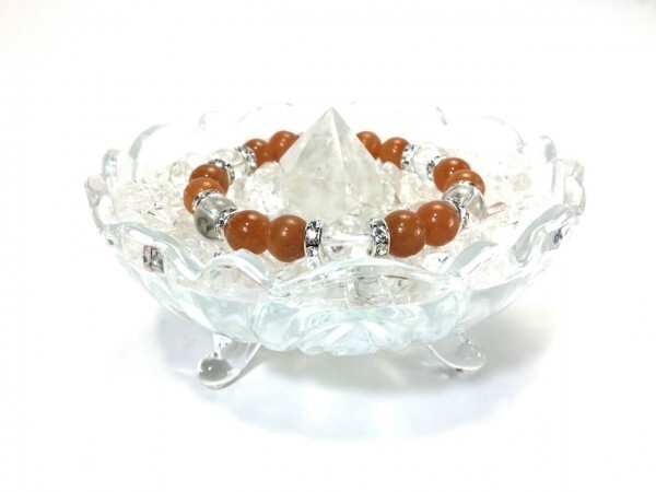 アベンチュリンと同様の力を持つと云われ安定と洞察力の石と言われ、身に付ける人にツキを呼びチャンスをもたらし、逆境を乗り越えるパワーを与えて、行動力と情熱をおこさせてくれます。