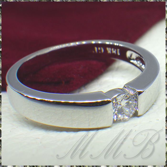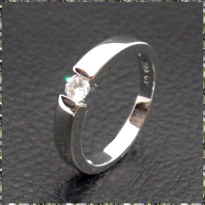 [RING] 18K White Gold High Polished Mirror Finish φ4mm クリスタルCZ テンションセッティングルック ホワイトゴールド 4mm リング 24号