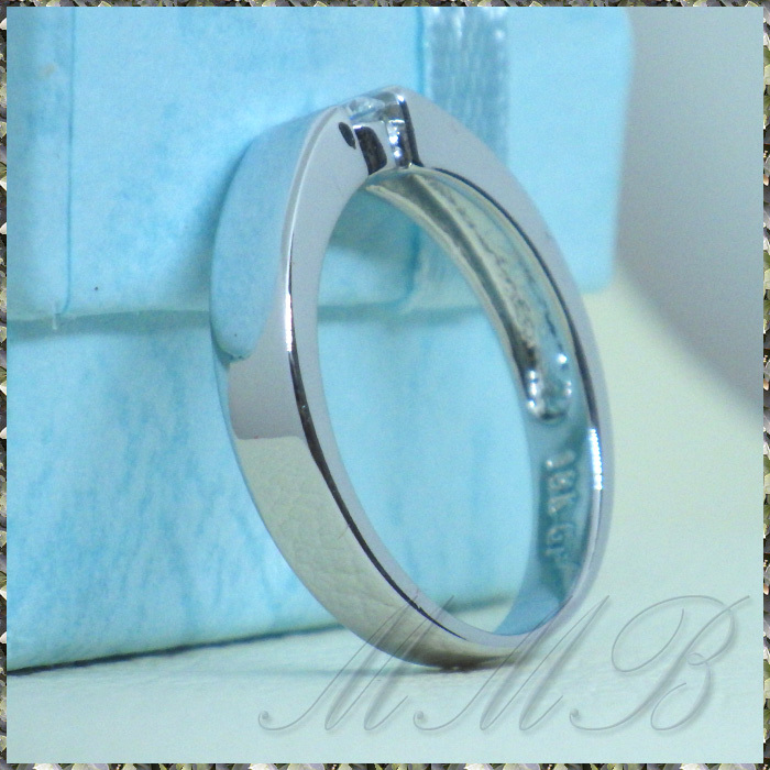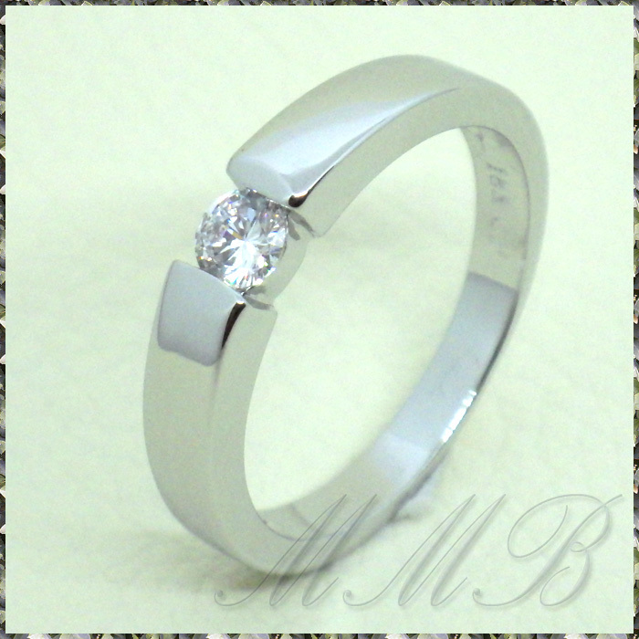18K White Gold High Polished Mirror Finish φ4mm クリスタルCZ テンションセッティングルック ホワイトゴールド 4mm リング です。