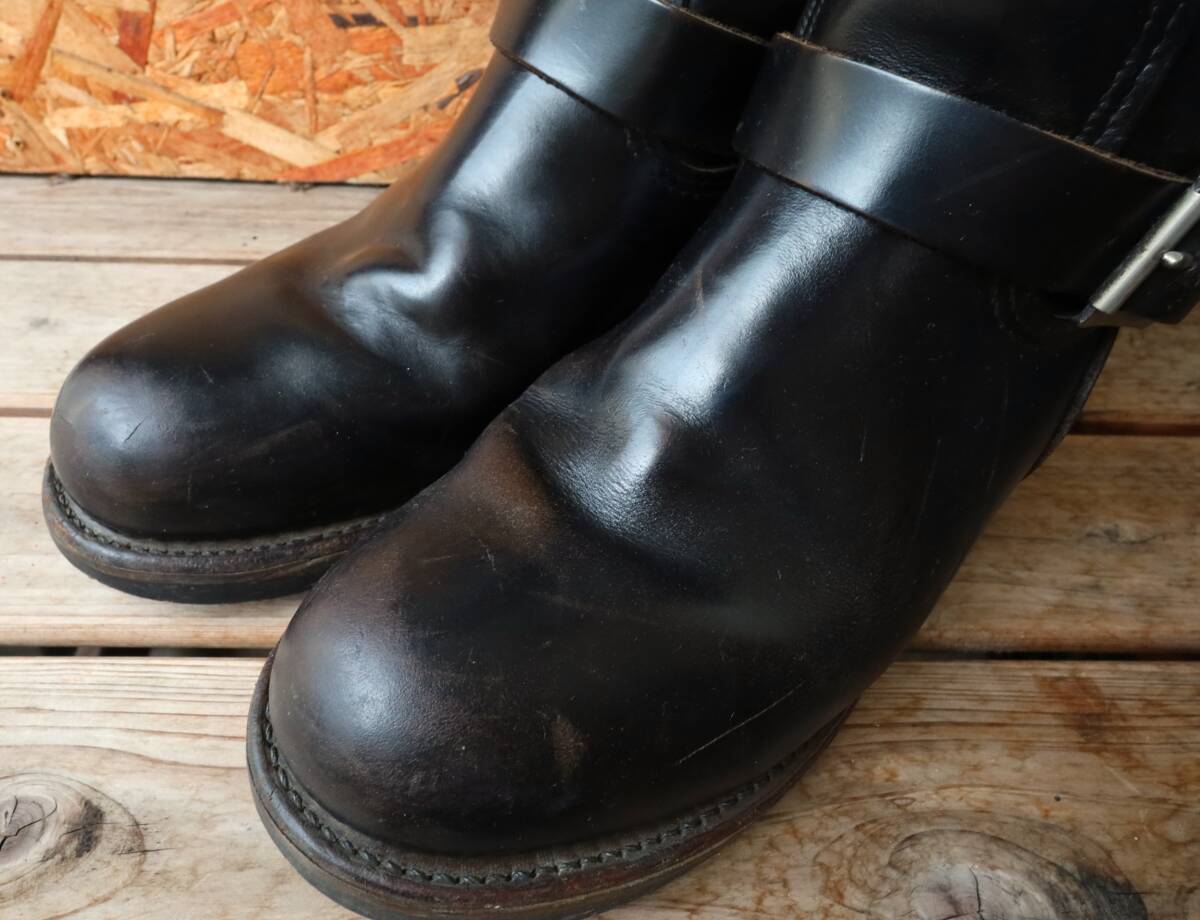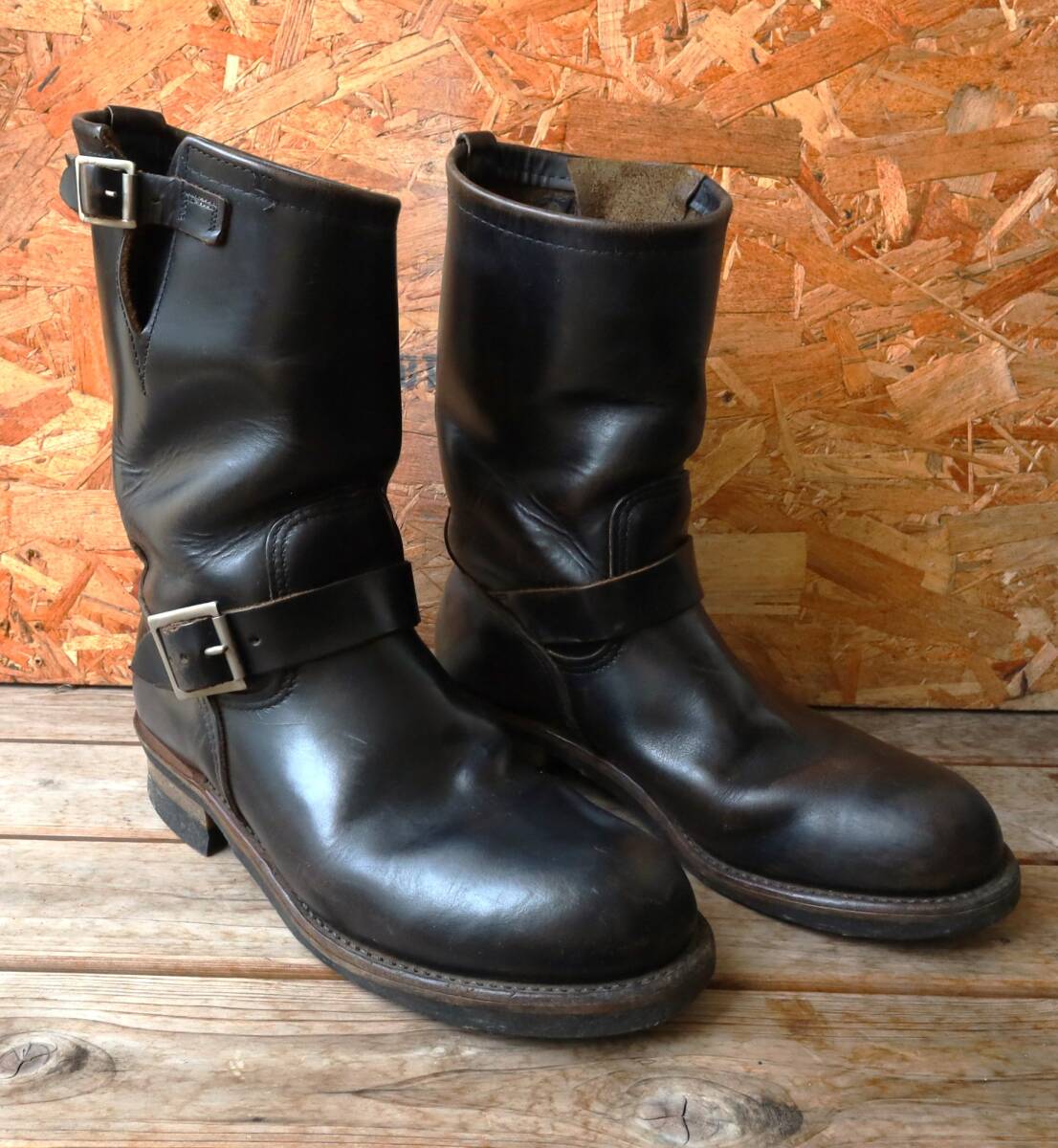 | 90年代のエンジニアブーツ ・レッドウィング ・2268 ・PT91プリントタグ 90年代中期 ・ブラッククローム ・8.5D/アウトソール29.5cm/幅11cm ・付属品無し 茶芯が薄っすらと見えています。 | ||