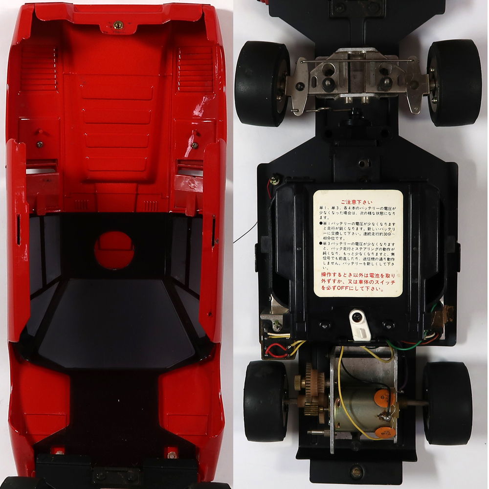 ブリキなのでリアリティ感があります。出品は画像のものが全てです。発砲箱はほとんど割れてなくなっています。ラジコンカーは使用品ですので擦れや汚れがあります。凹みや擦り傷がある箇所もあります。ボディに凹みや歪みがある箇所もあります。電池を接触させるスプリングや金具が劣化のために破損しております。ですので動作確認が一切できておりません。電池接触金具は長い間電池を入れっぱなしにしていて、電池から出てきた液体で腐食したようです。この部分さえなんとかすれば動作させる事は可能なような感じです。プロポ等はプロポで有名なJR製です。プロポの前進用のスティックが曲がっています。このような状態ですので、お取り引き後に説明以外の不足品や説明以外の破損や故障が有ったとしても返品は出来ませんしクレームもお受けできません。問題があれば全てご自分でご対処ください。