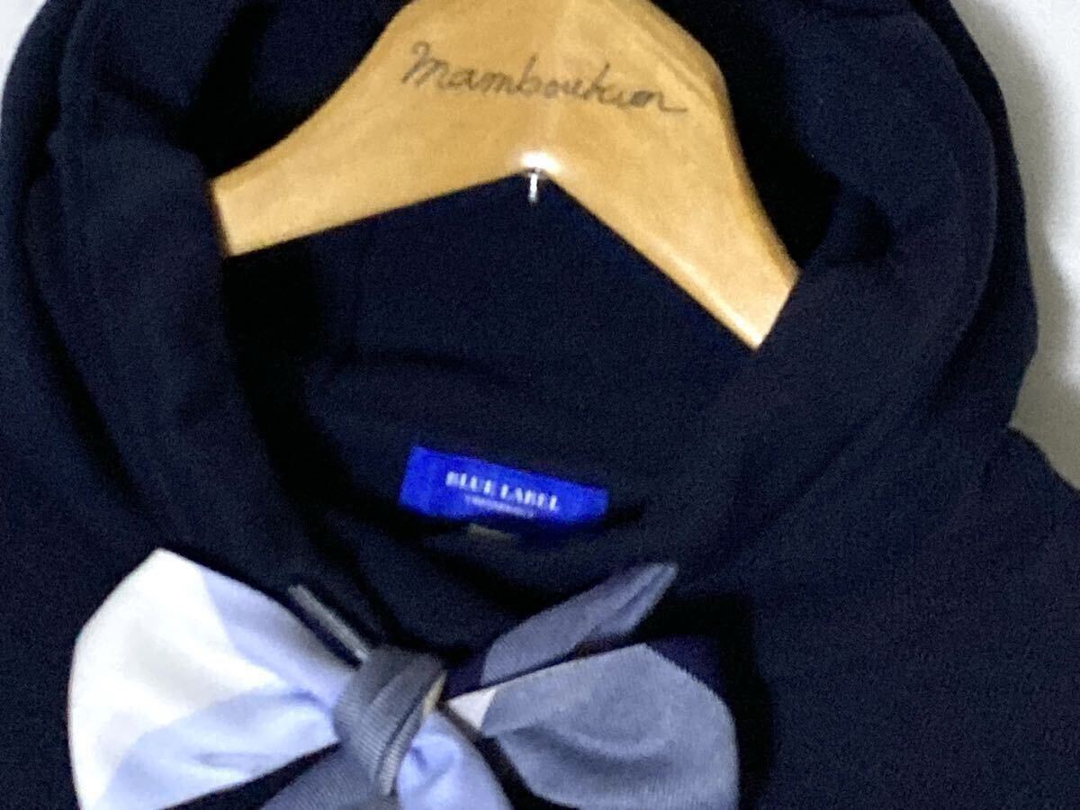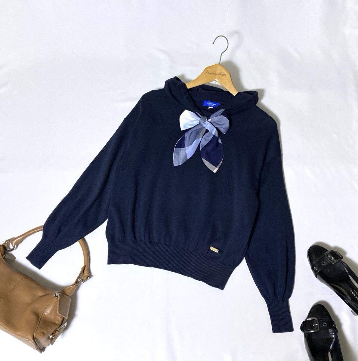 美品 ブルーレーベルクレストブリッジ チェックのおリボンが可愛いニットパーカー 38 送料230円♪