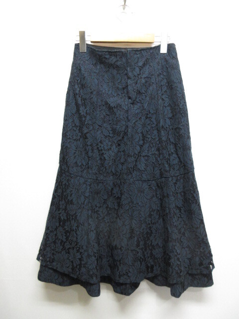 アプワイザーリッシェ Apuweiser-riche リバーシブル マーメイド スカート 1 ネイビー/黒 総レース 無地 裏地付き レディース