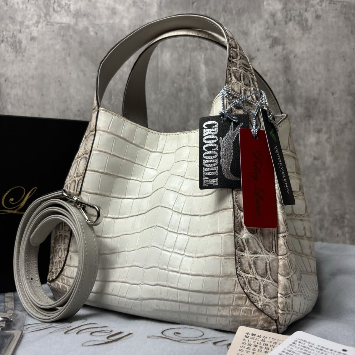 希少価値の高いヒマラヤクロコダイルを贅沢に使用した、PELLEY LUSSOの2wayハンドバッグ。センター取りの美しい斑模様と上品なグラデーションが、手にした瞬間から特別な存在感を放ちます。ショルダーとハンドの2way仕様で、フォーマルにもデイリーにも活躍。市場にほとんど出回らない逸品、この機会を逃すと後悔するほどの魅力を備えています。