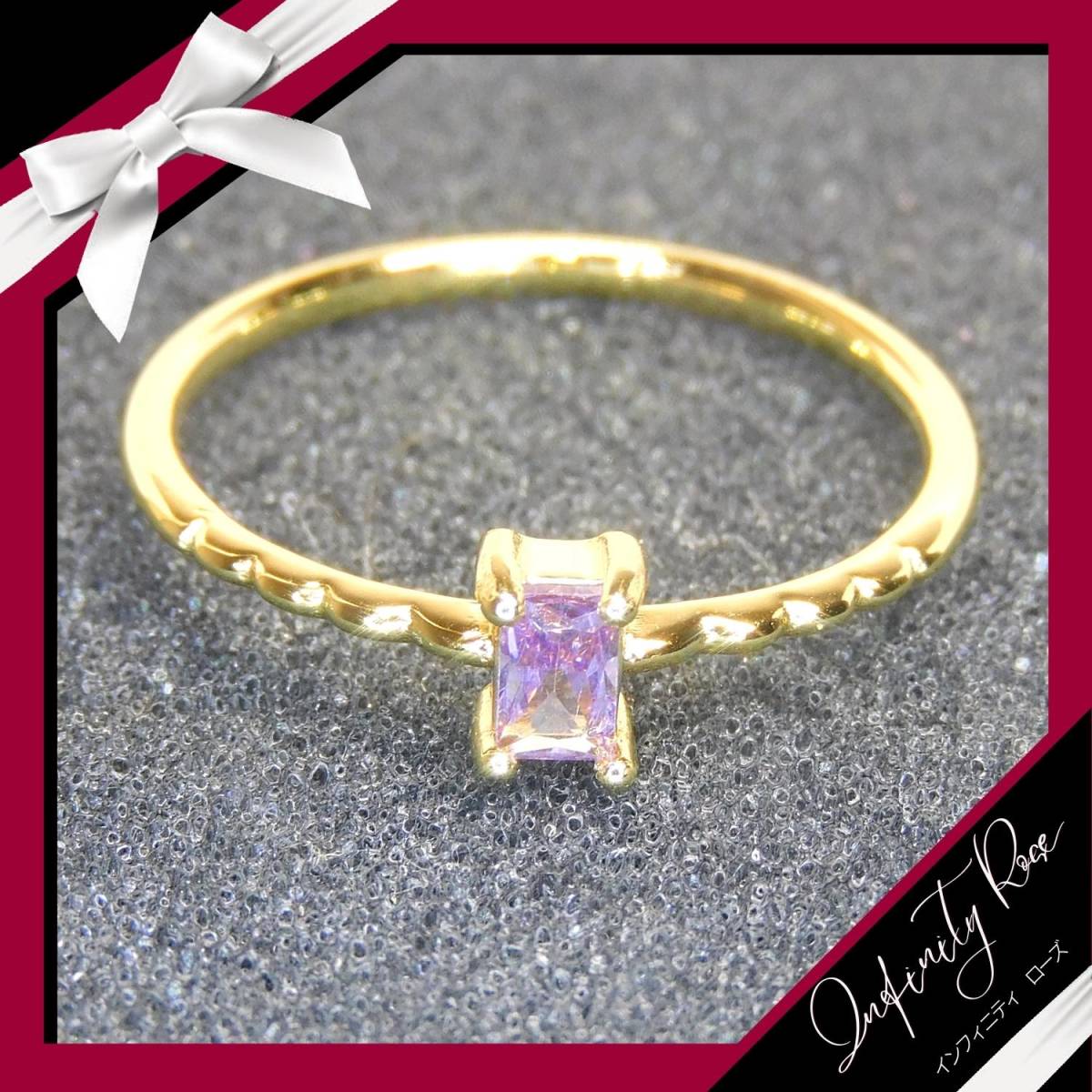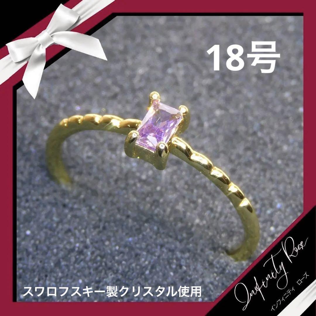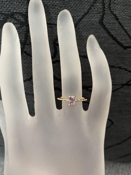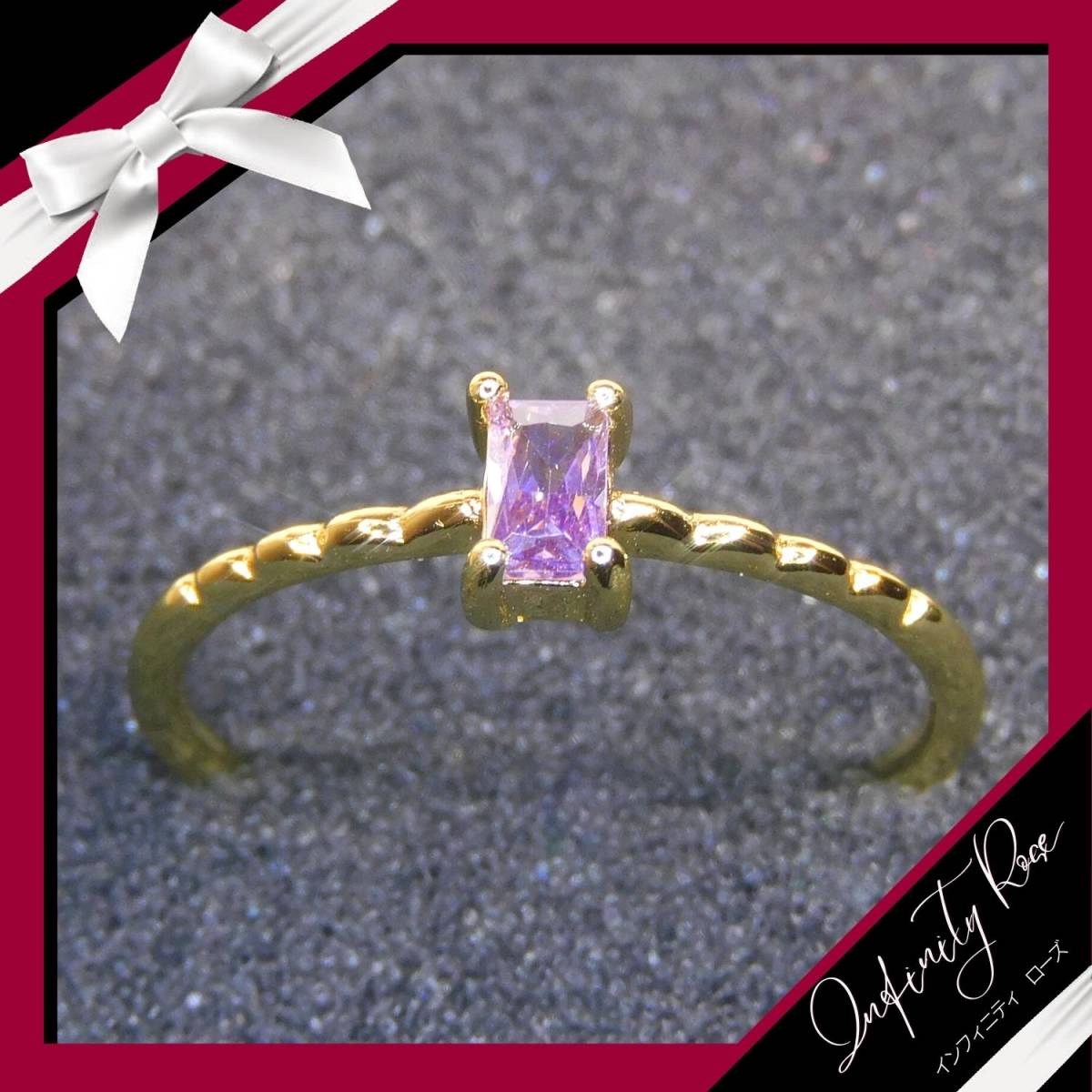(1136)18号 ゴールド×パープル 細身の小さなクリスタルリング スワロフスキー製クリスタル使用