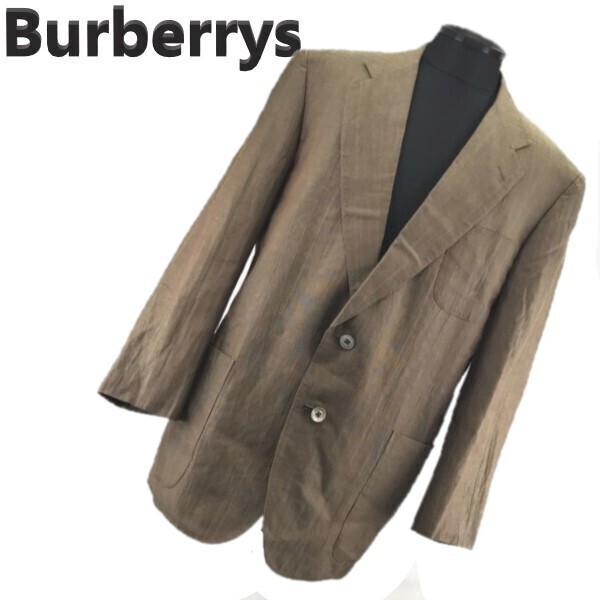 Burberrys 90sビンテージ/旧バーバリー メンズL 麻100%テーラードジャケット ブレザー ブラウン系 管理NO. 机1