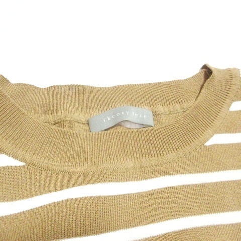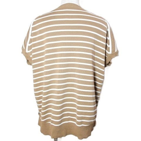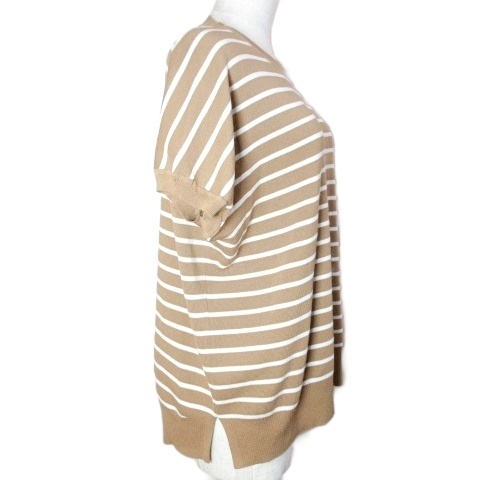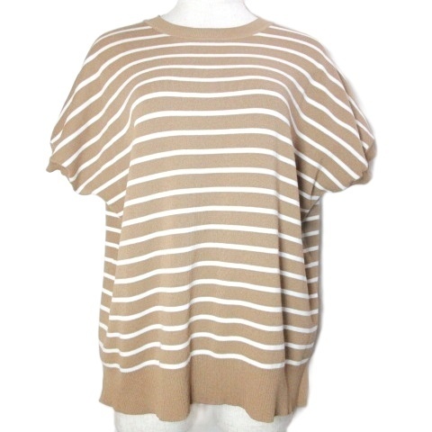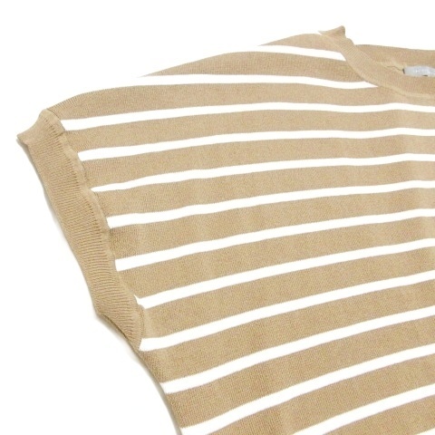 セオリーリュクス theory luxe 美品 23SS SUFFRORK ARENA ニット フレンチスリーブ 半袖 ボーダー 薄手 038 M相当 ベージュ ホワイト