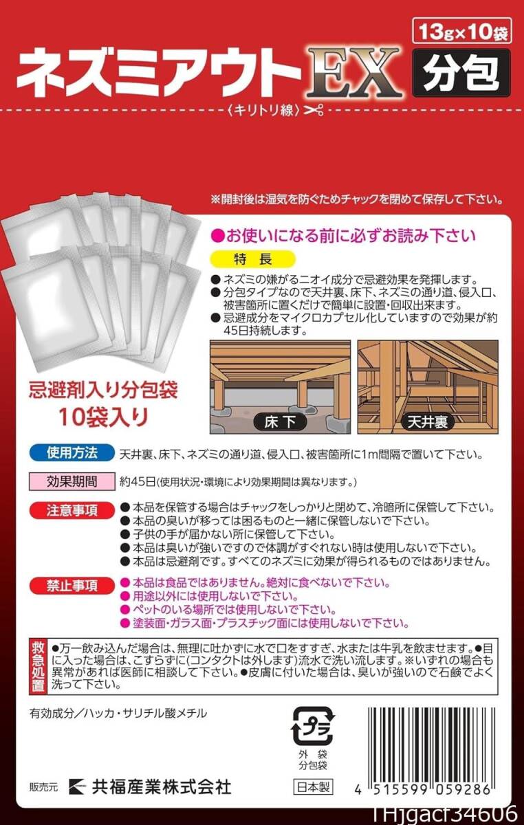 ネズミ忌避剤 ネズミアウトEX 分包タイプ 13g×10袋 屋根裏 床下ネズミ避け ねずみ避け ドブネズミ クマネズミ ハツカネズ