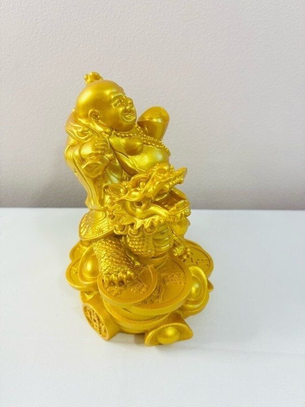 龍亀に座る布袋像は、風水では【正財運・仕事運・人脈運】を高め、金運アップや開運の縁起物として人気があります。