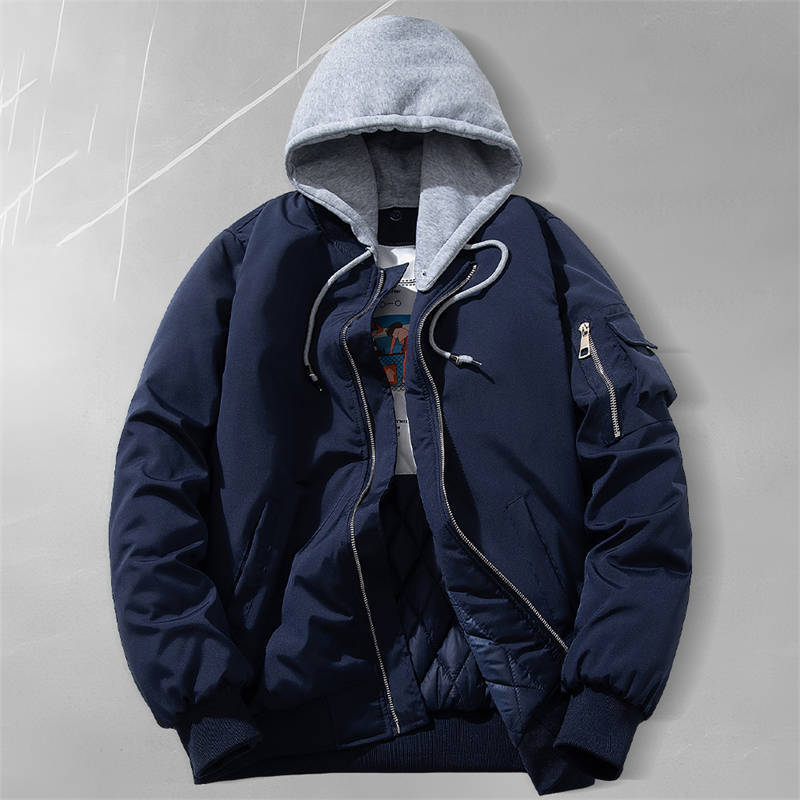 1410-Mネイビー 中綿ジャケット メンズ フード取り外し可 新品 防風 防寒 暖かい 厚手 冬服 アウター ショート丈 フライトジャケット