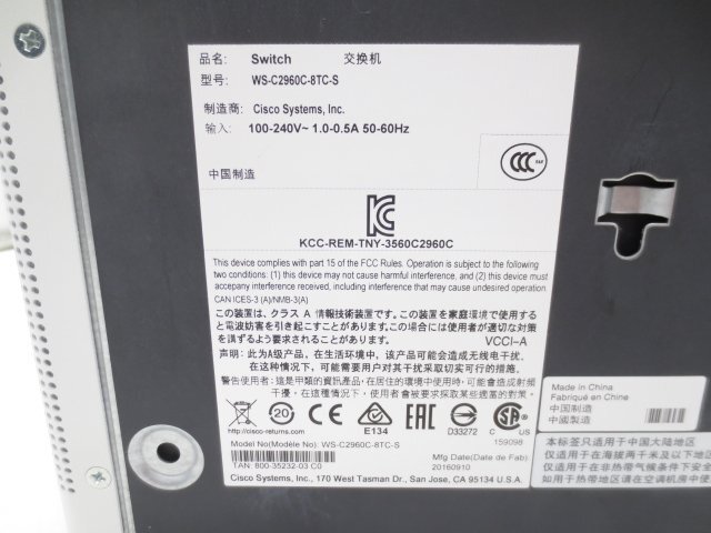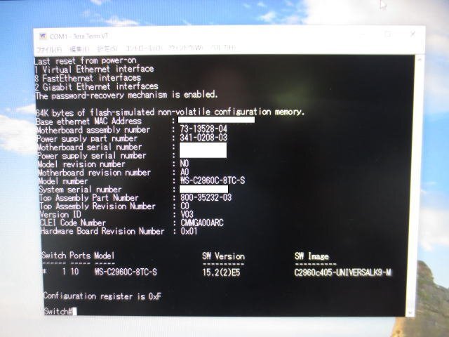 ◇CISCO/シスコ◇スイッチ◇Catalys 2960-C Series LL◇WS-C2960C-8TC-S V03◇15.2(2)E5◇8ポート◇初期化済◇現状渡し◇T2632