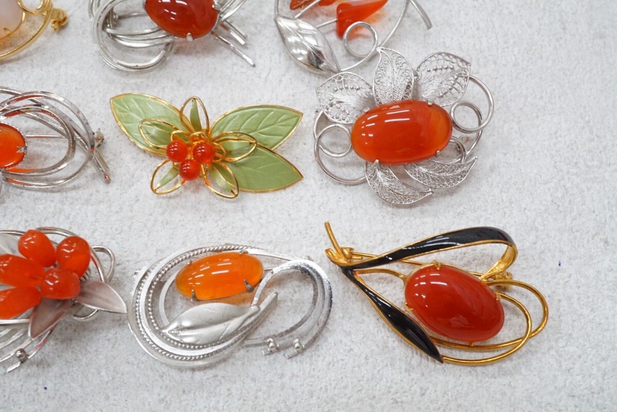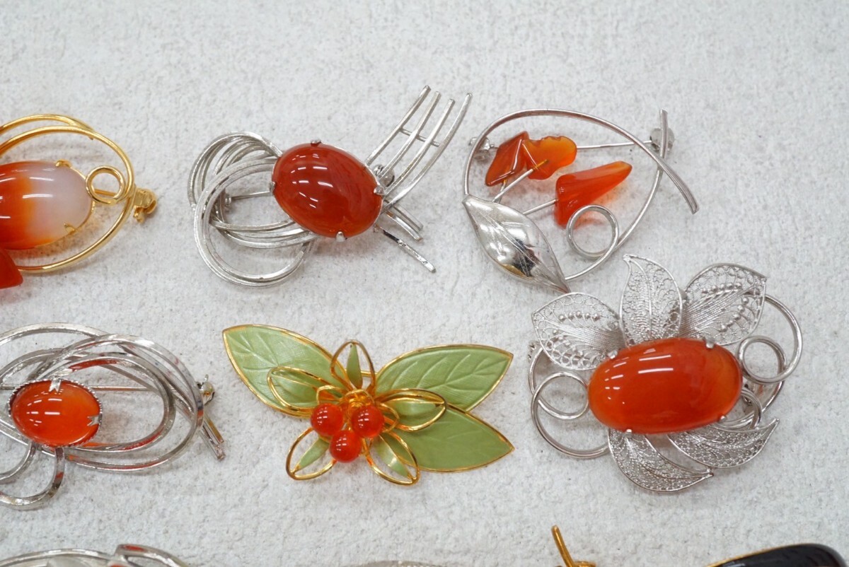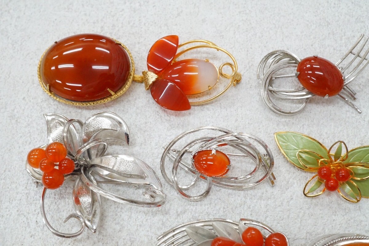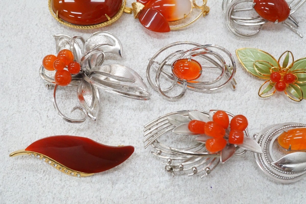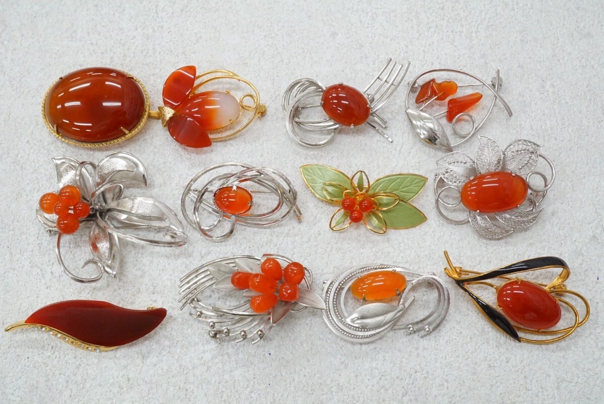 C163 カーネリアン 瑪瑙 ブローチ 12点 カラーストーン ヴィンテージ アクセサリー 大量 セット まとめて おまとめ まとめ売り