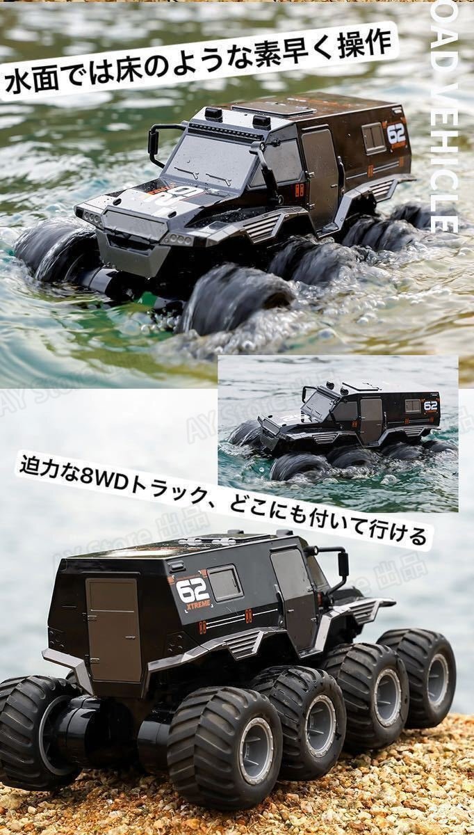 ★黒バッテリー1本 ラジコン 水陸両用 8WDトラック 防水 360°回転 転覆走行OK オフロード車 ドリフト戦車 RCスタントカー bhw0251