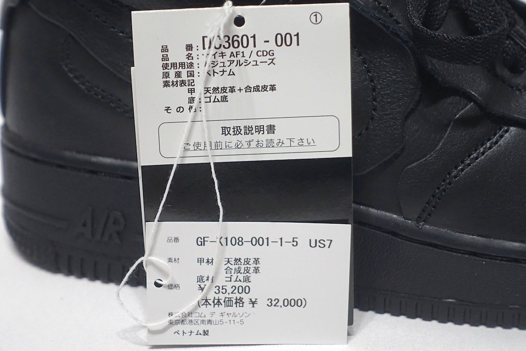 20AW 新品未使用 NIKE × COMME des GARCONS HOMME PLUS コムデギャルソン AIR FORCE 1 MID DC3601 100 エアフォースワン ブラック 7 25cm