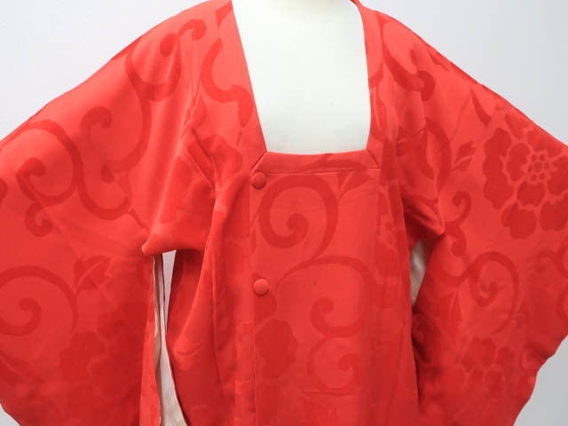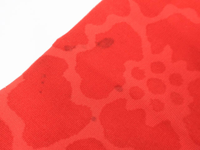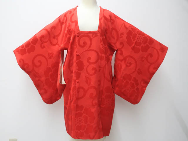 リサイクル商品のため、羽裏にしみと擦れ、表所々汚れがございますが着用可能なお品です。 地色は赤 です。 1枚目の画像が近いお色かと思われます。 素材は正絹です。 |