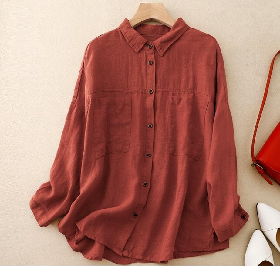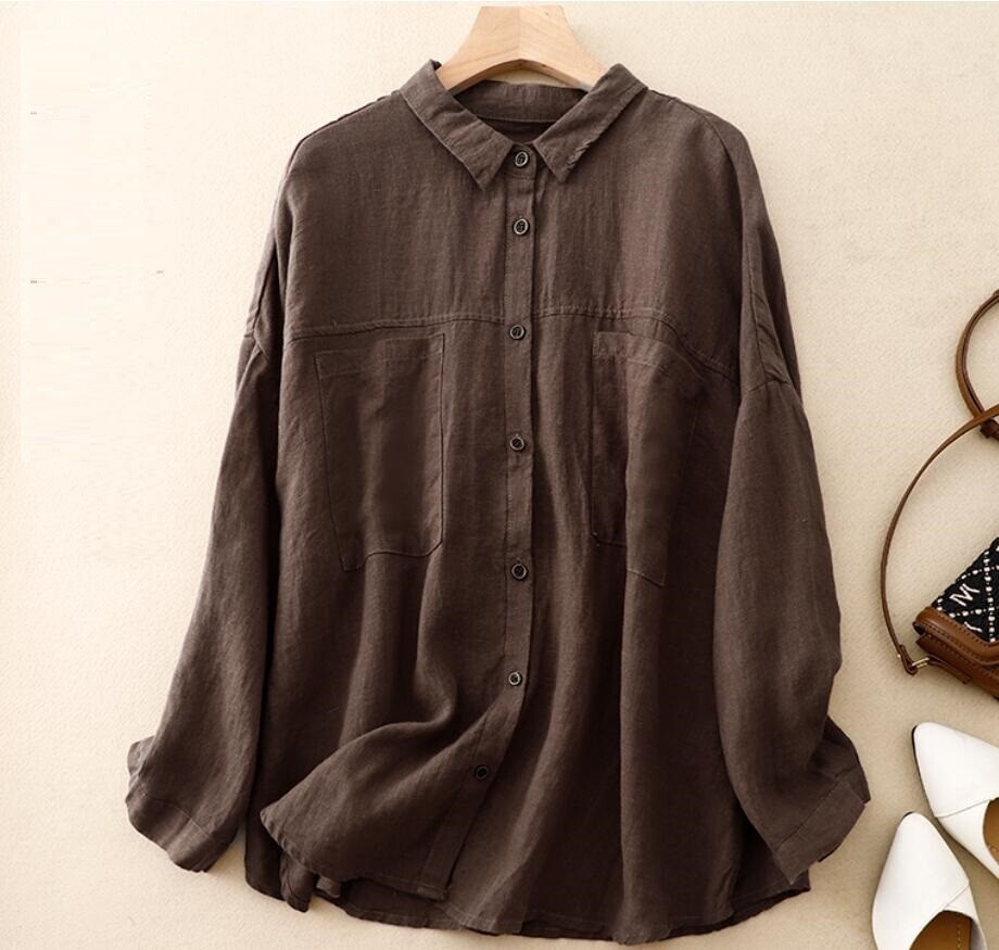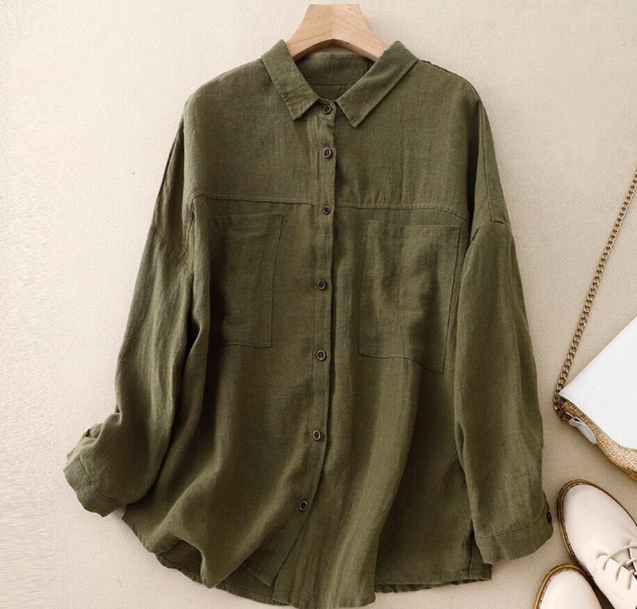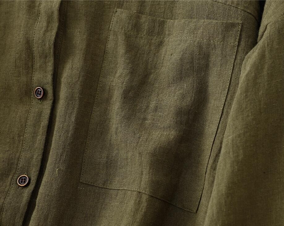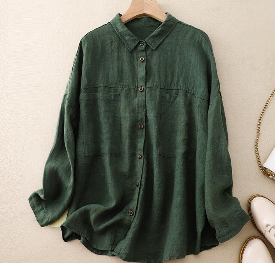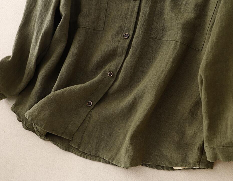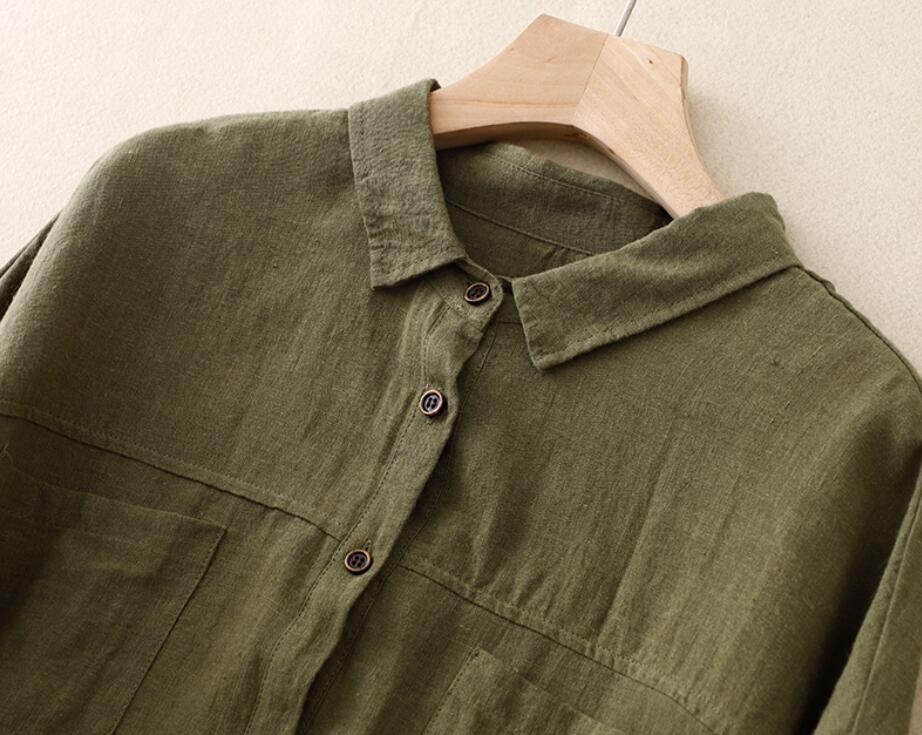 新品 秋 冬 シャツ ブラウス レディース トップス ナチュラル 着回し 綿麻風 チュニック オフィス ビジネス 事務服緑