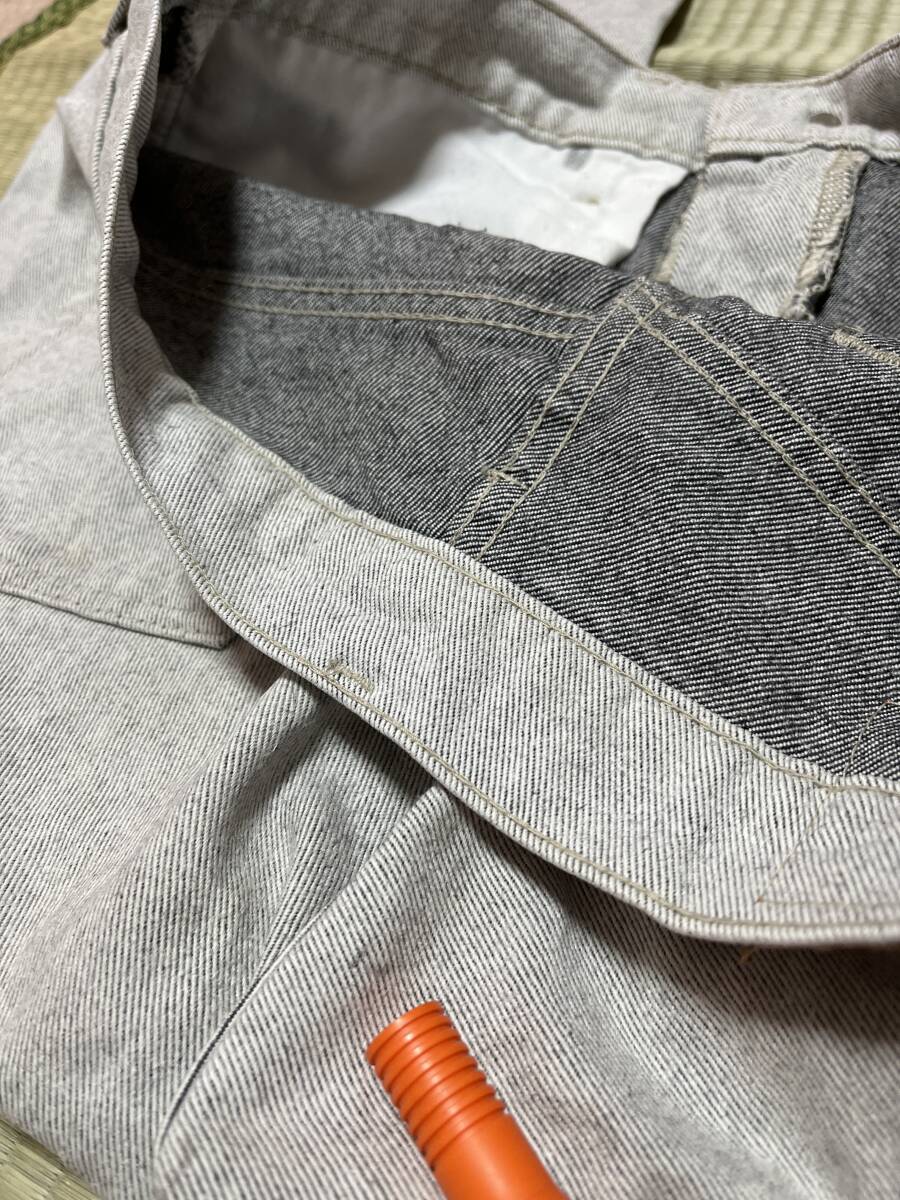 本商品前ペン先間にうっすら影の様なシミ感有り、実物古着なりにぱっと見致命的では無く許容範囲だと思いますが神経質な方はご遠慮下さい、他明るい色合いなりに微妙なくすみ感は有ります、平置きウエスト約44.5股下約71です、